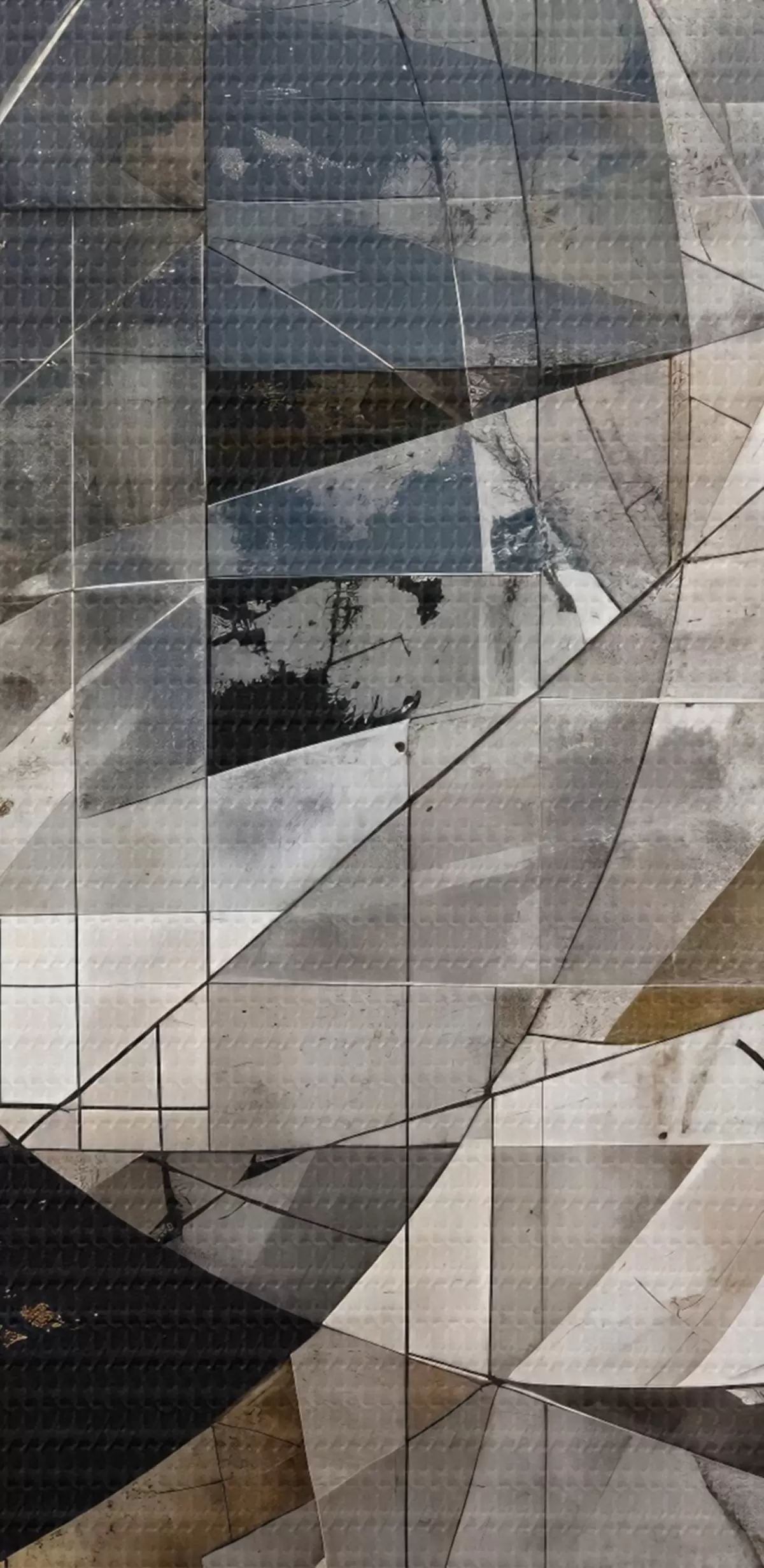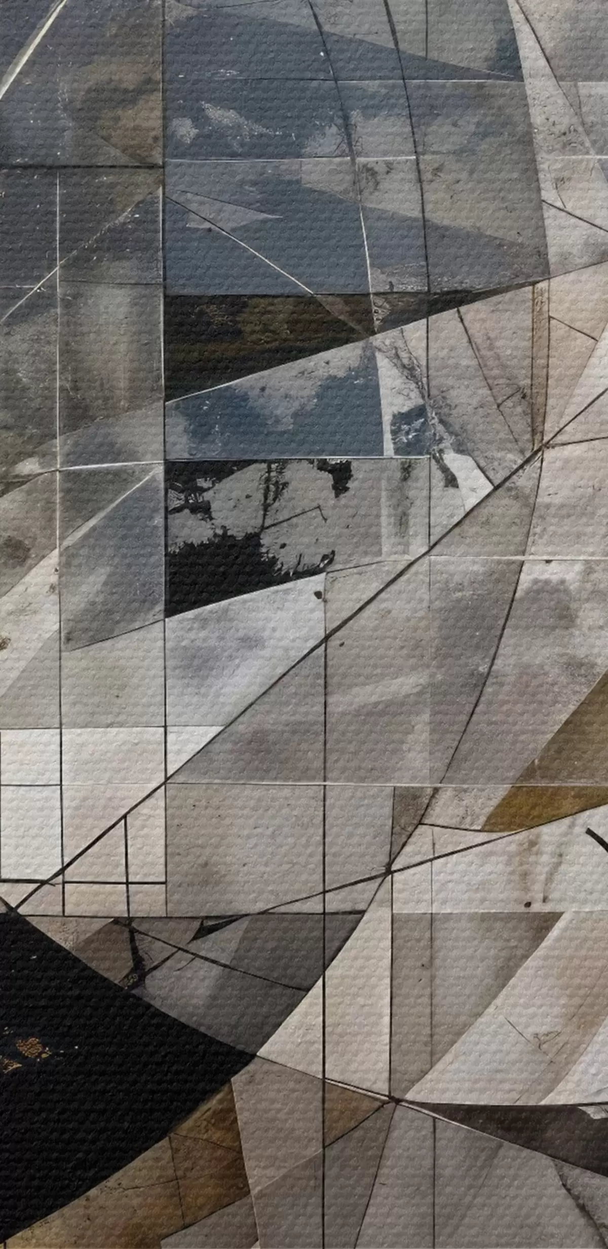 Pictură pe pânză O compoziție geometrică abstractă modernă cu forme suprapuse și imprimeu în nuanțe de gri, negru și bej Nr s42212