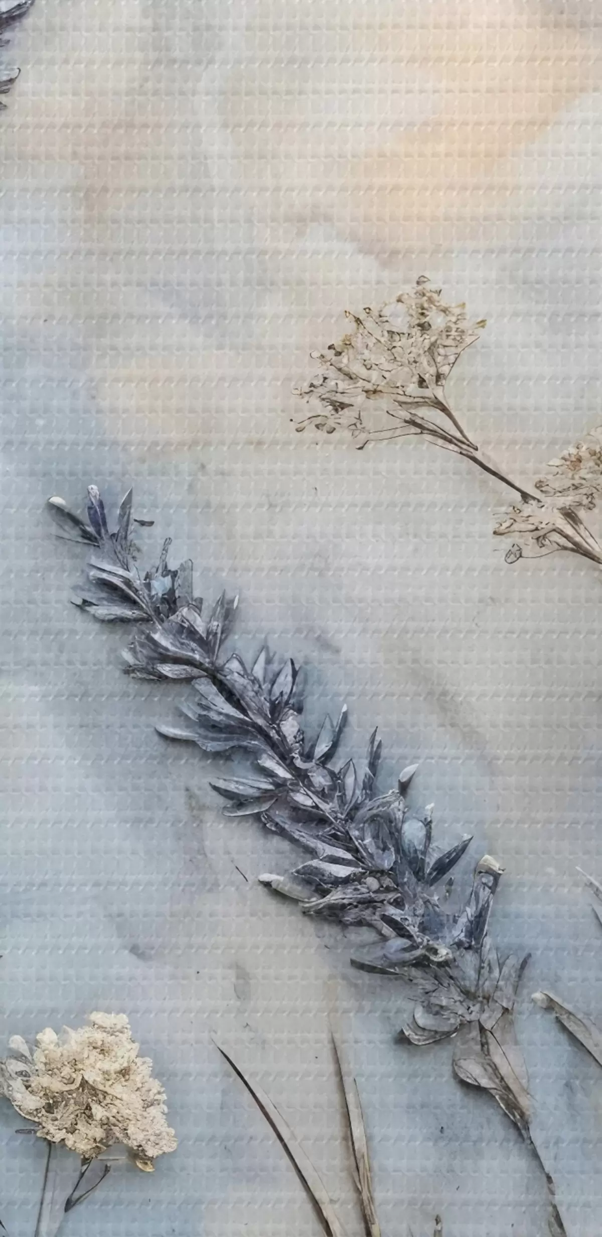 Pictură pe pânză Un câmp de diverse flori sălbatice și plante în nuanțe de albastru, alb și bej pe un fundal moale, cețos Nr s42214