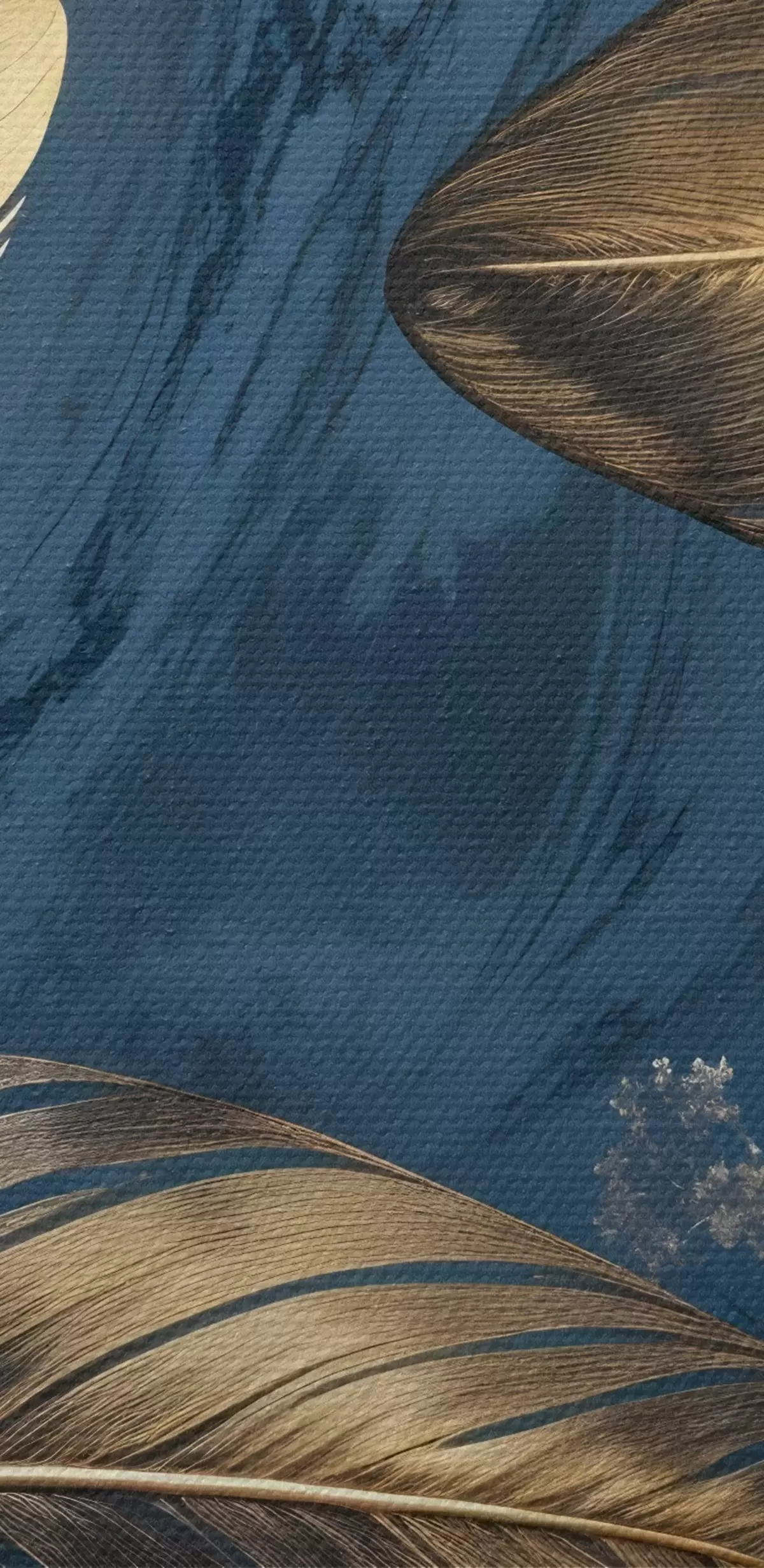 Pictură pe pânză Pene decorative abstracte galbene și bej care plutesc pe un fundal textural albastru închis Nr s42218