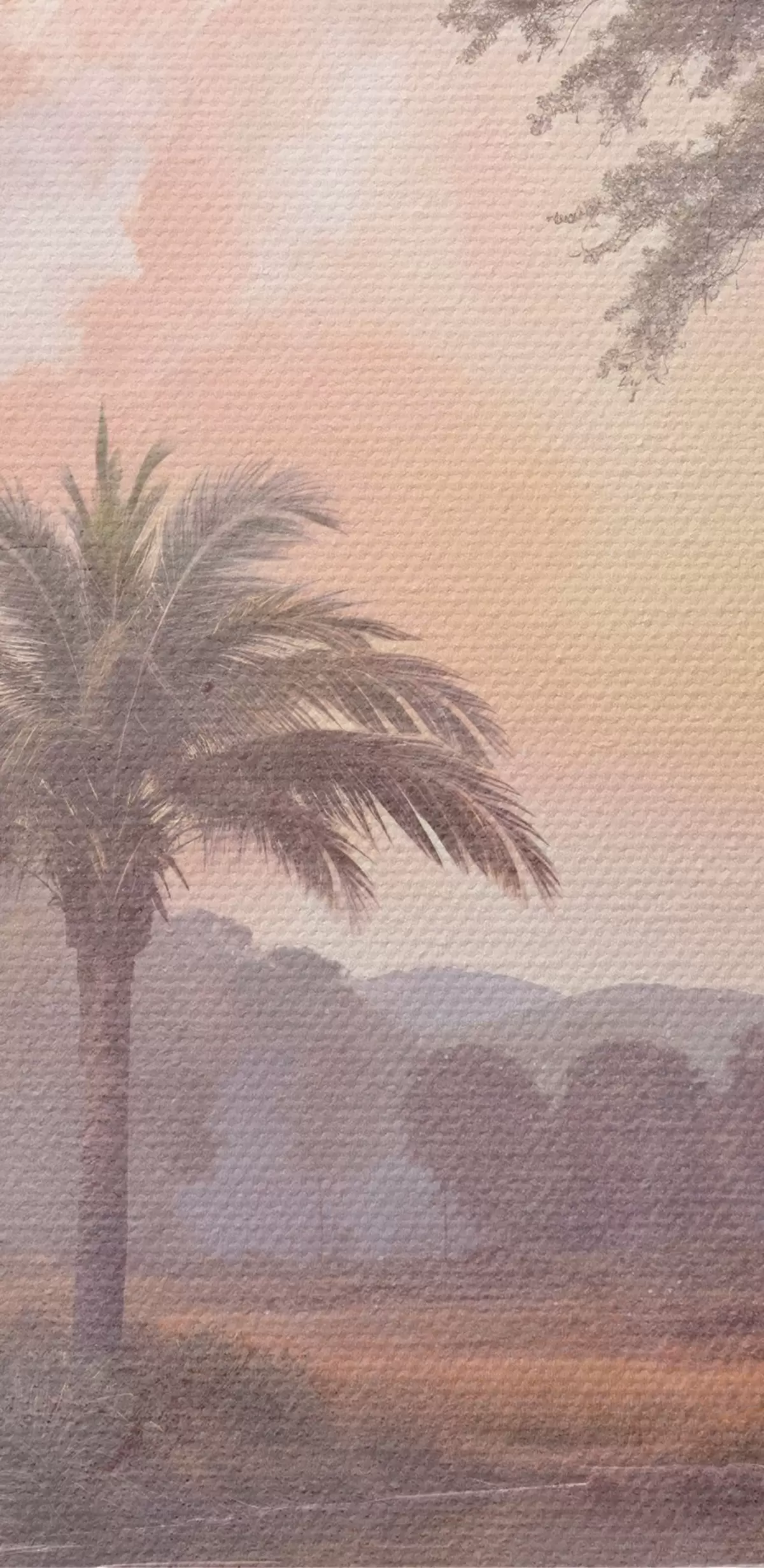 Pictură pe pânză Un peisaj tropical texturat cu un lac liniștit înconjurat de palmieri luxurianți și alte frunzișuri Nr s42219