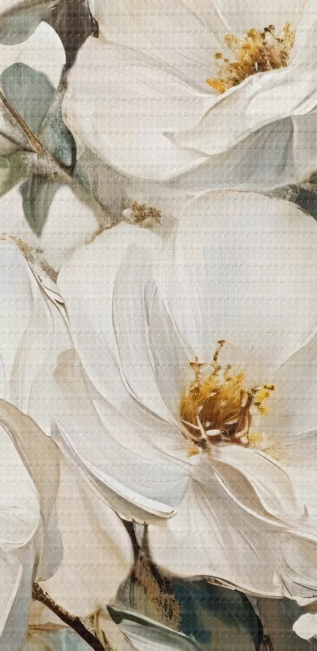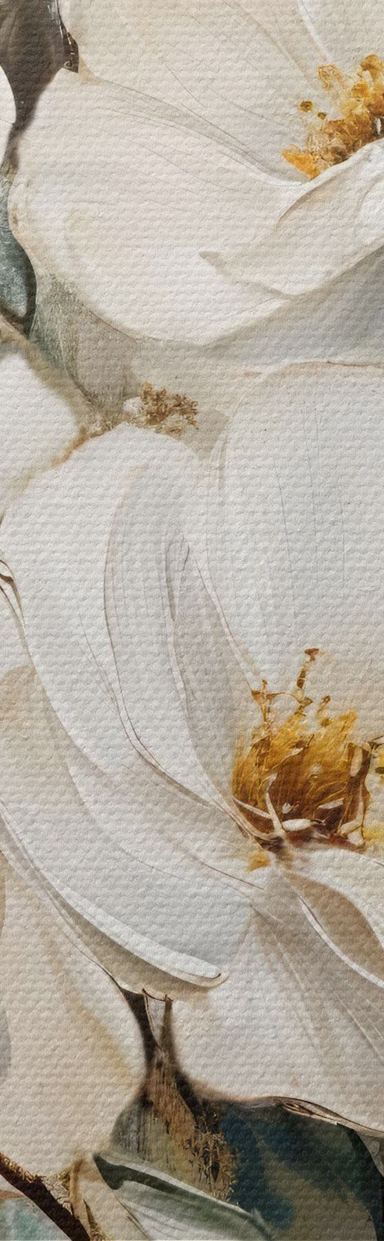 Tablouri Un buchet de flori albe mari în stil pictură în ulei cu centre galbene pe un fundal deschis  s42222