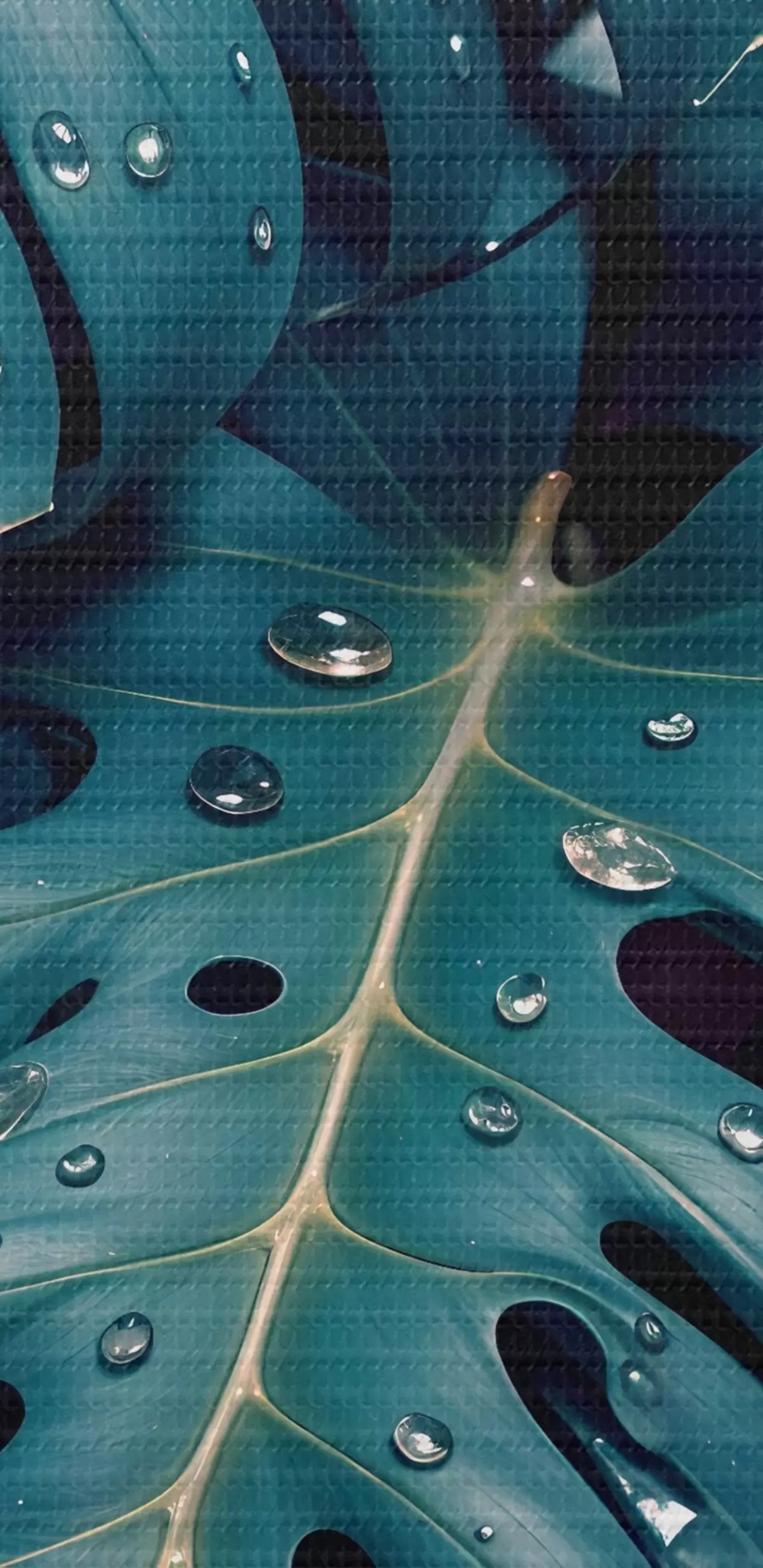 Tablouri Frunze luxuriante de monstera tropicală cu picături de apă pe un fundal întunecat, creând o imprimare atmosferică și mohorâtă s42233