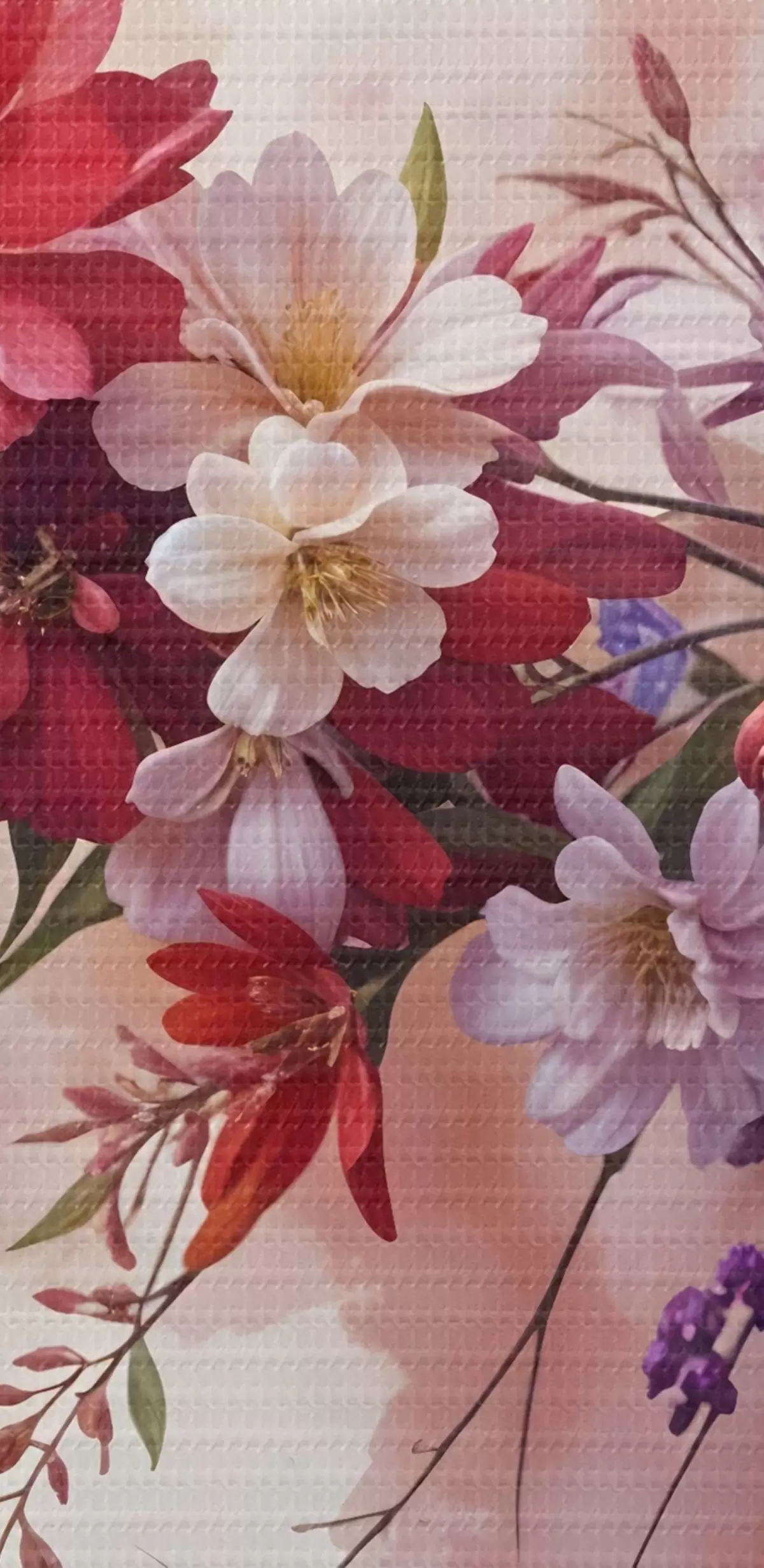 Pictură pe pânză Flori colorate, inclusiv dalii roșii, roz și violet, margarete și alte flori pe un fundal blând, neclar Nr s42234