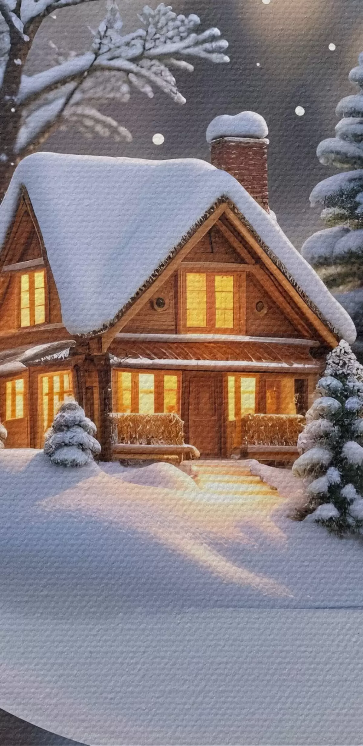 Tablouri Un glob de Crăciun din sticlă cu un peisaj de iarnă cu zăpadă în interior, cu o cabană confortabilă în pădure cu pini s42236