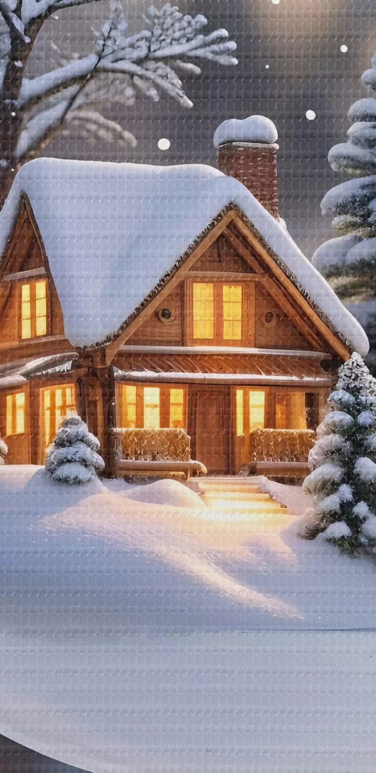 Pictură pe pânză Un glob de Crăciun din sticlă cu un peisaj de iarnă cu zăpadă în interior, cu o cabană confortabilă în pădure cu pini Nr s42236