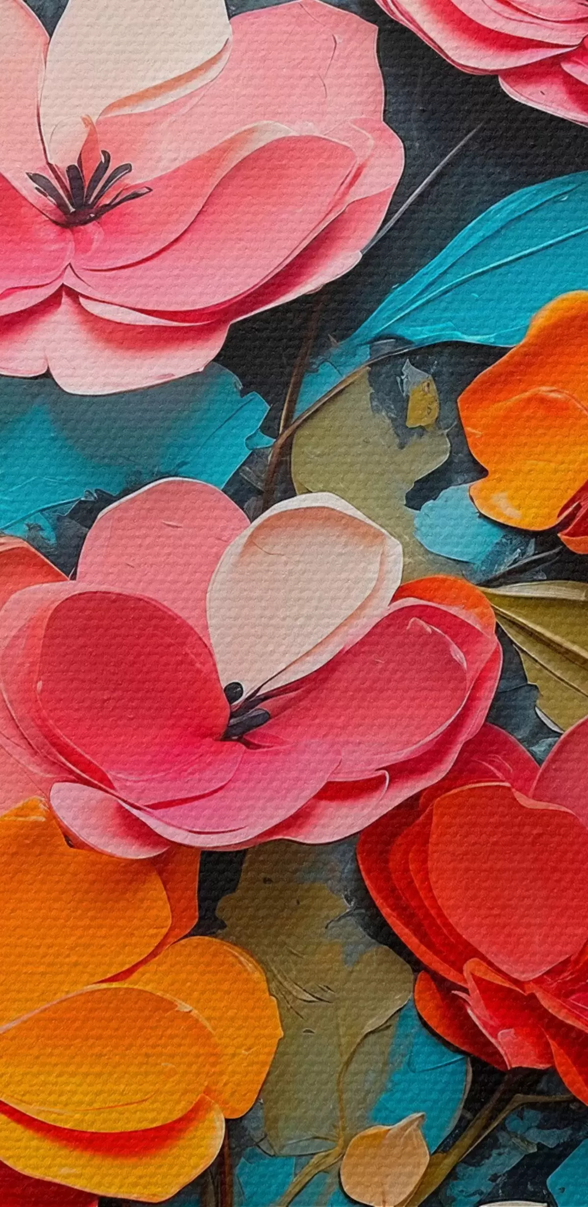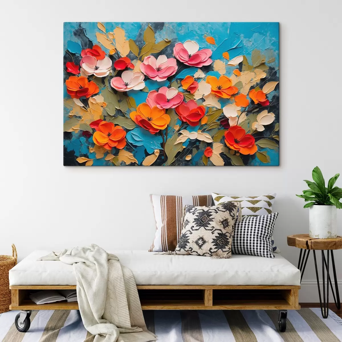 Pictură pe pânză Flori și frunze pe fundal albastru Nr s42255