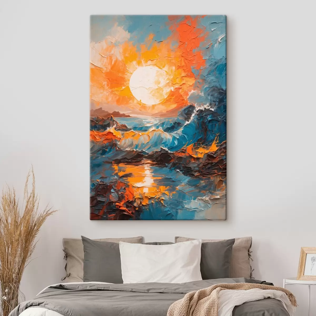 Pictură pe pânză Mare furtunoasă și soare în stilul picturii în ulei Nr s42257