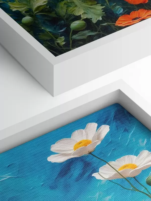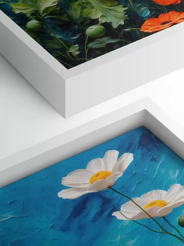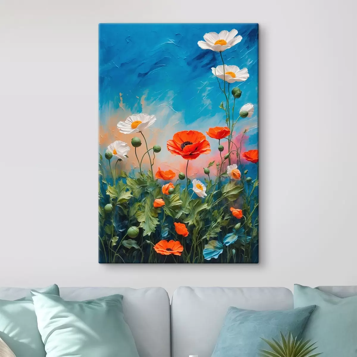 Pictură pe pânză Margarete și maci pe fundal albastru Nr s42261