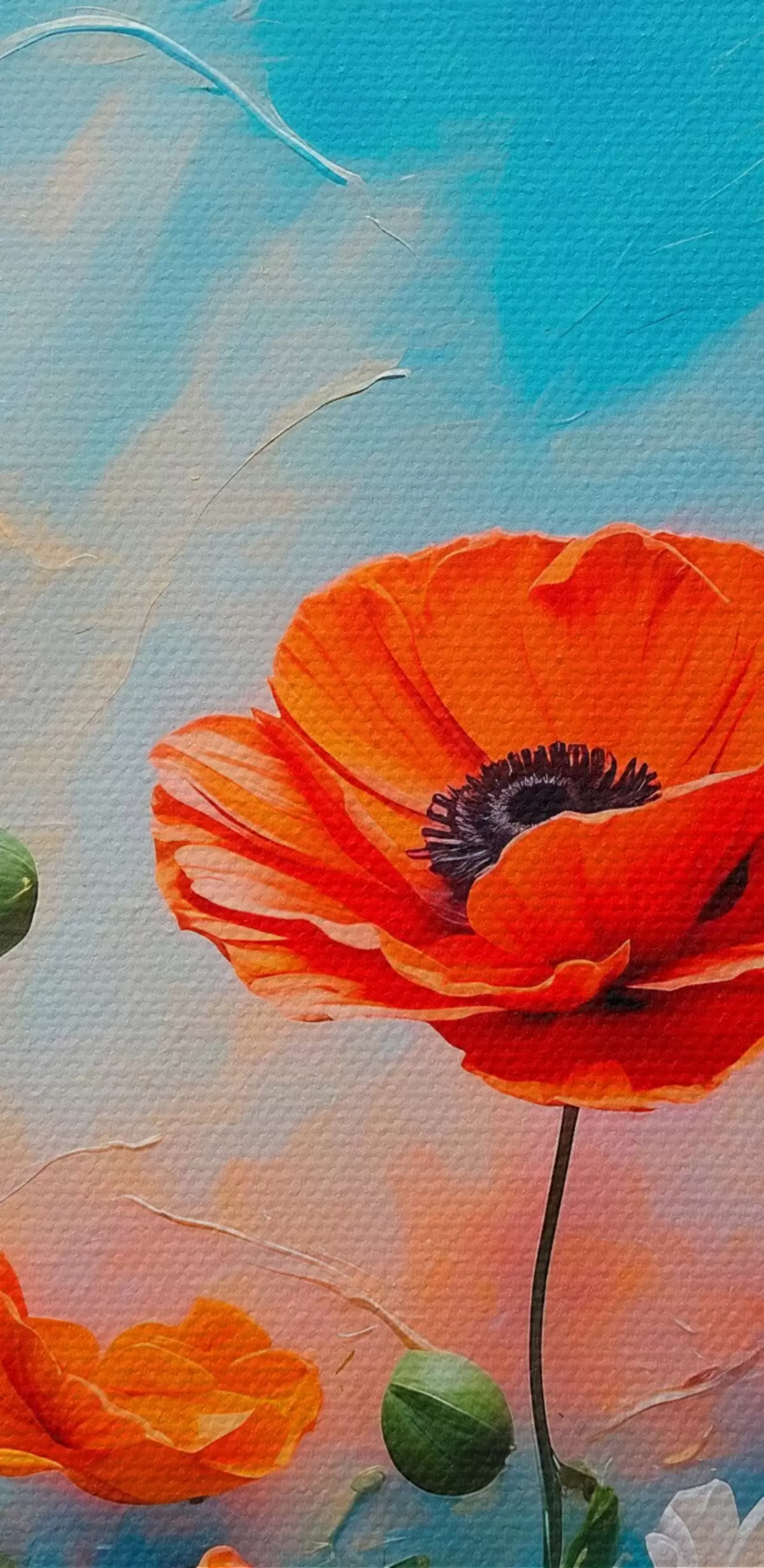 Pictură pe pânză Margarete și maci pe fundal albastru Nr s42261