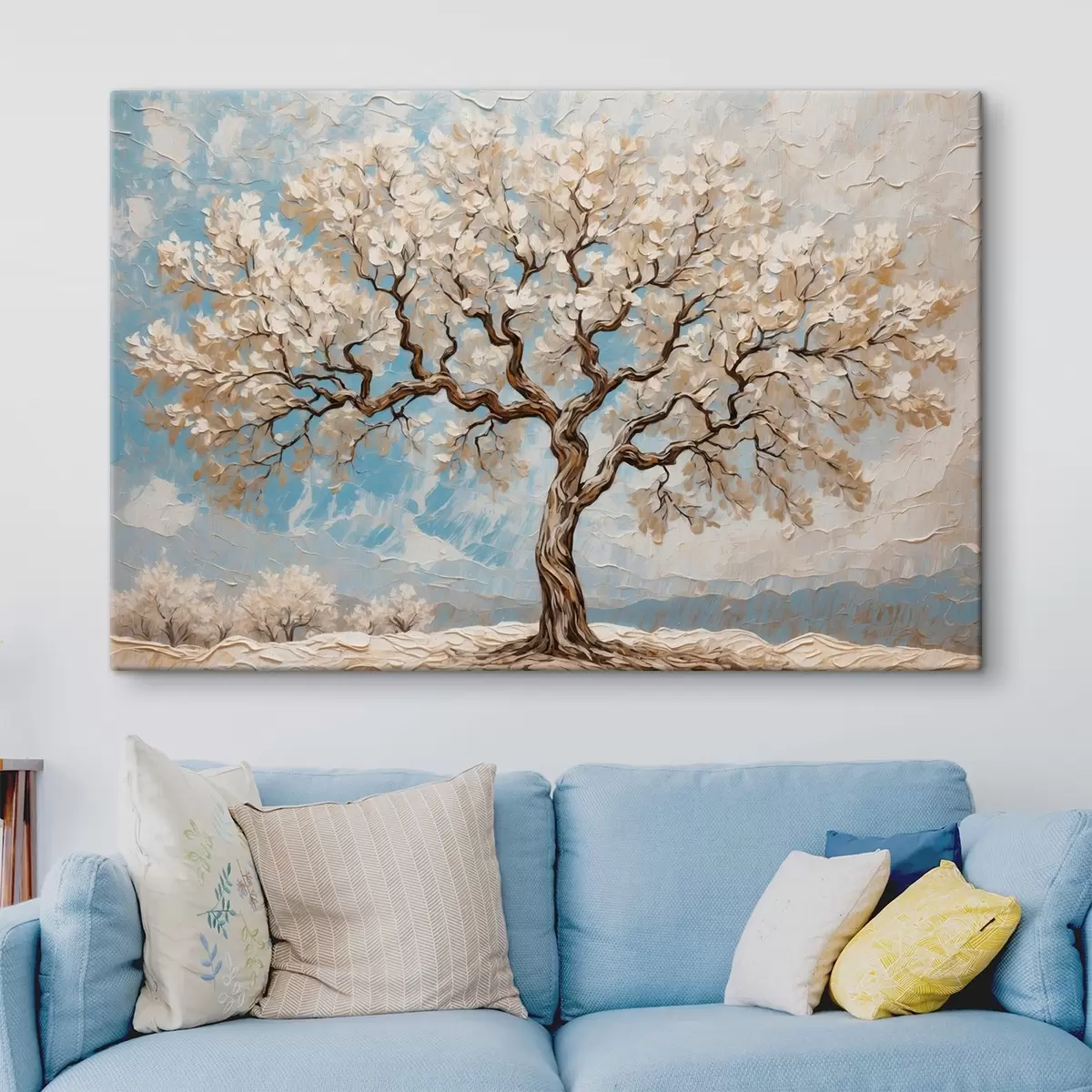Pictură pe pânză Copac alb pe fundal alb-albastru Nr s42275