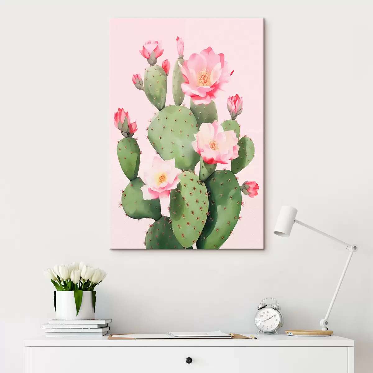 Pictură pe pânză Cactus și flori roz Nr s42313
