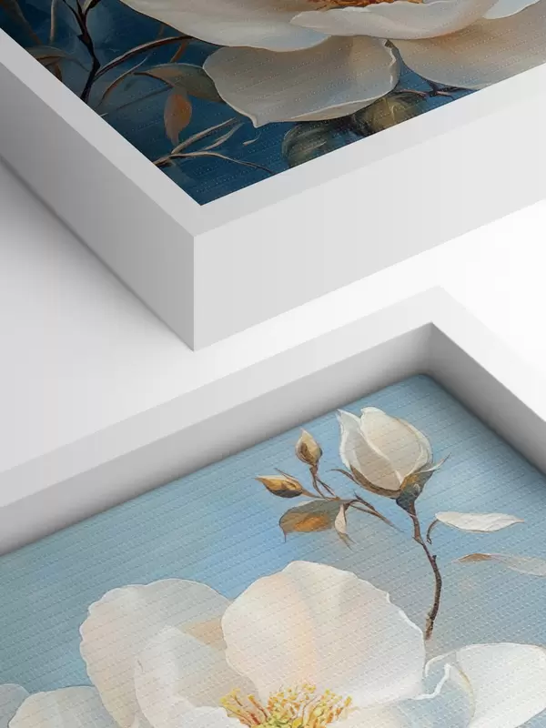 Pictură pe pânză Flori albe mari pe un fundal albastru Nr s42321