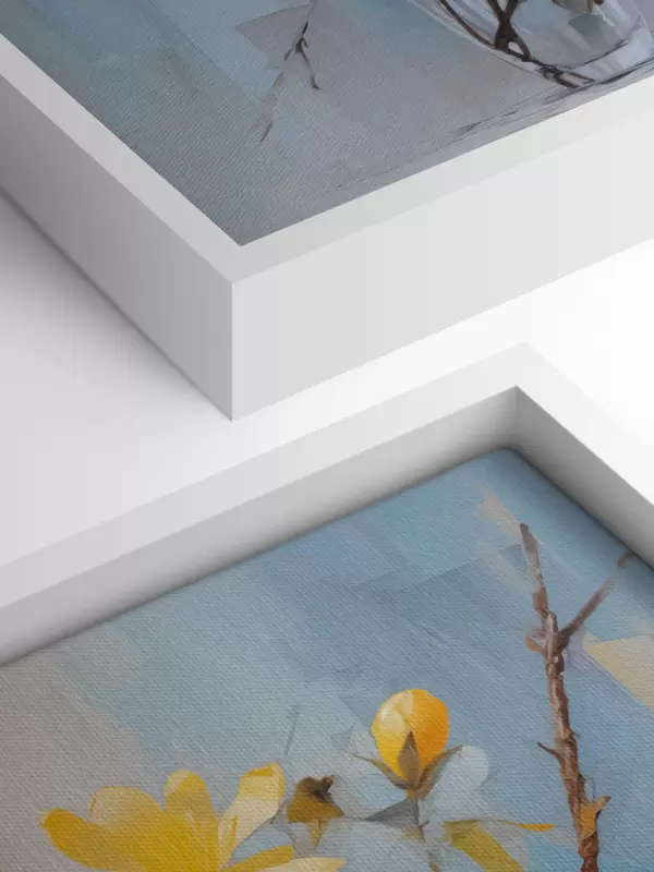 Pictură pe pânză Ramuri cu flori galbene într-o vază imitație de pictură Nr s42358