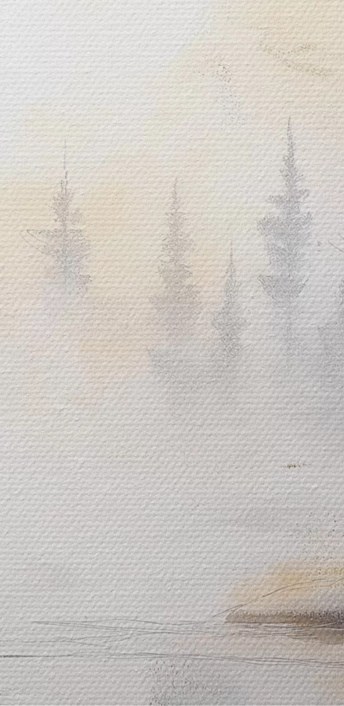 Pictură pe pânză Peisaj natural cu râu, pădure și pini, culori pastelate moi Nr s42375
