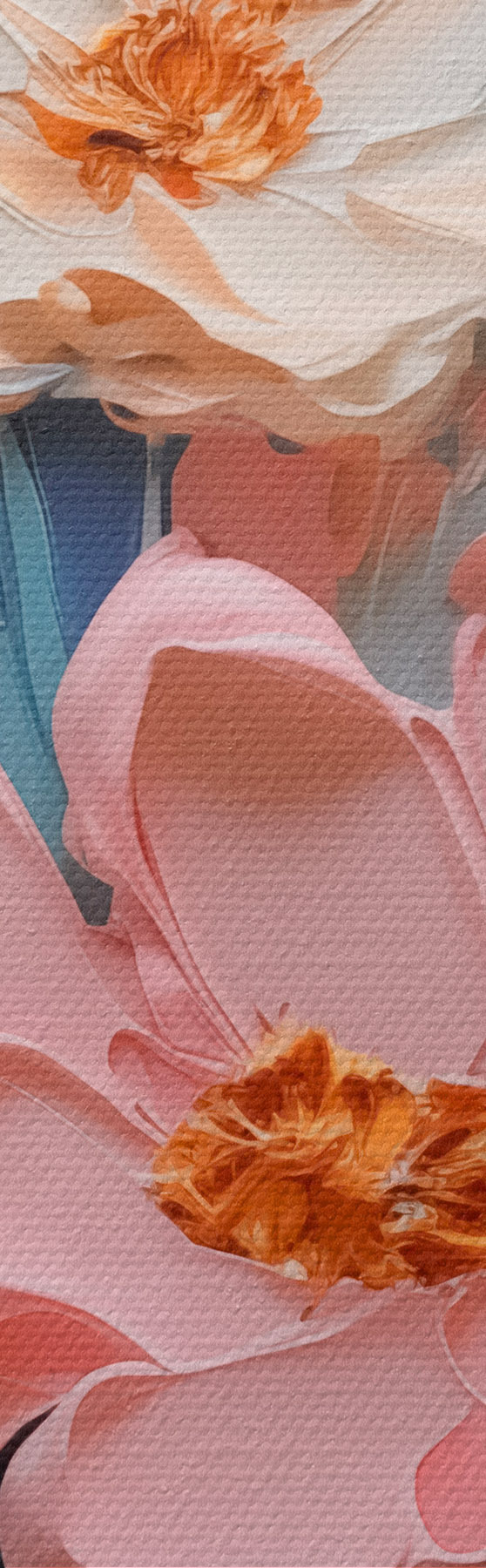 Trei tipuri de materiale sunt disponibile pentru comandă: Economic Canvas - un material dens și durabil pentru imprimarea digitală, identic cu pânza de pictor, suprafață impermeabilă, reproducere realistă a detaliilor, material cu granulație medie. Premium Canvas - textura seamănă cu cea a pânzei unui pictor (fire mici împletite). Reproducere moale, detaliată a imaginii pe o suprafață mată. Eco-Premium - țesătură 100% bumbac de înaltă calitate. Datorită fibrelor naturale de bumbac, materialul este durabil și rezistent la uzură. Reproducere excelentă a culorilor și a detaliilor.