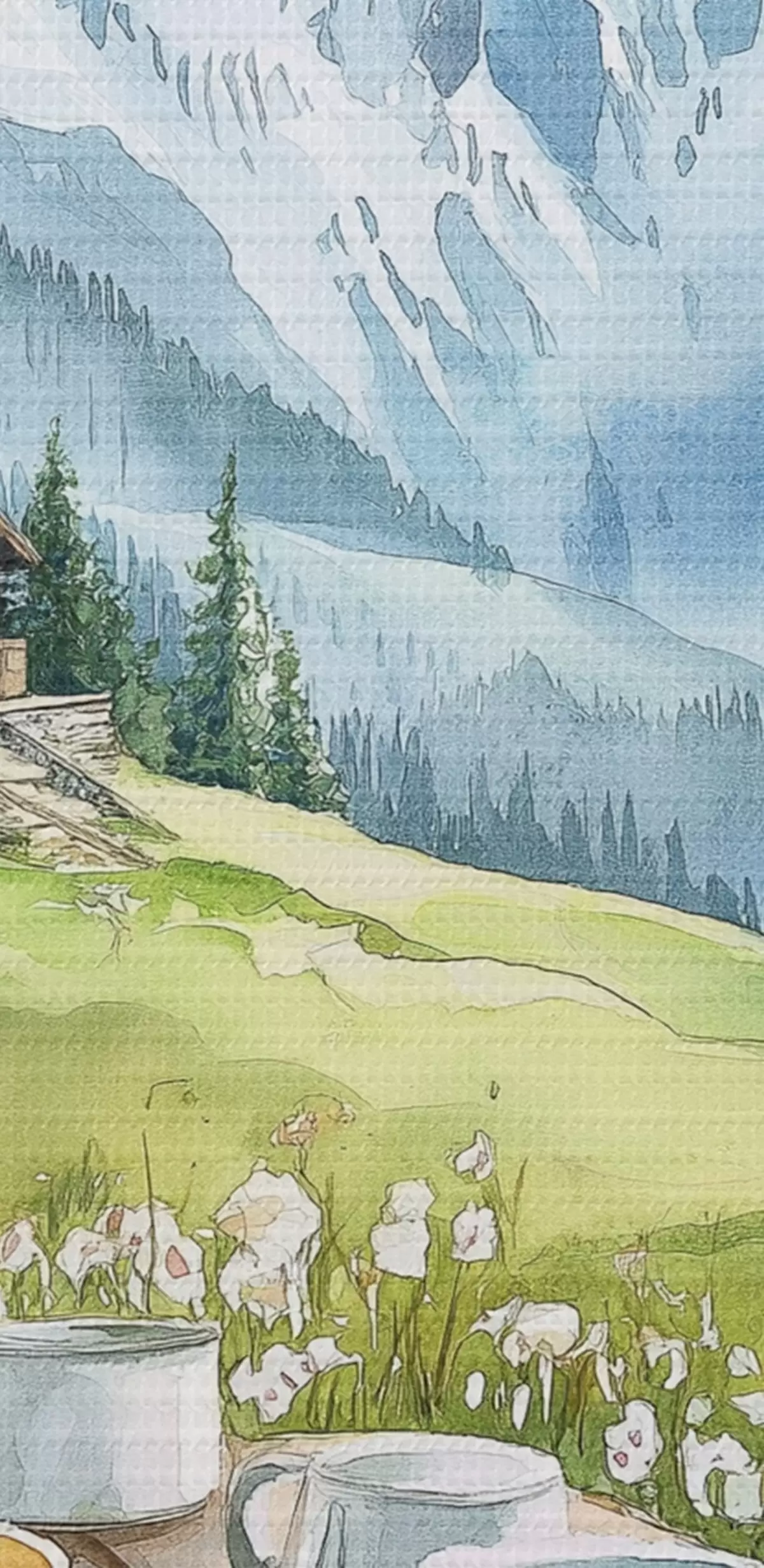 Tablouri Mic dejun în Alpi, munți, pădure, natură, vară, stil acuarelă s42426