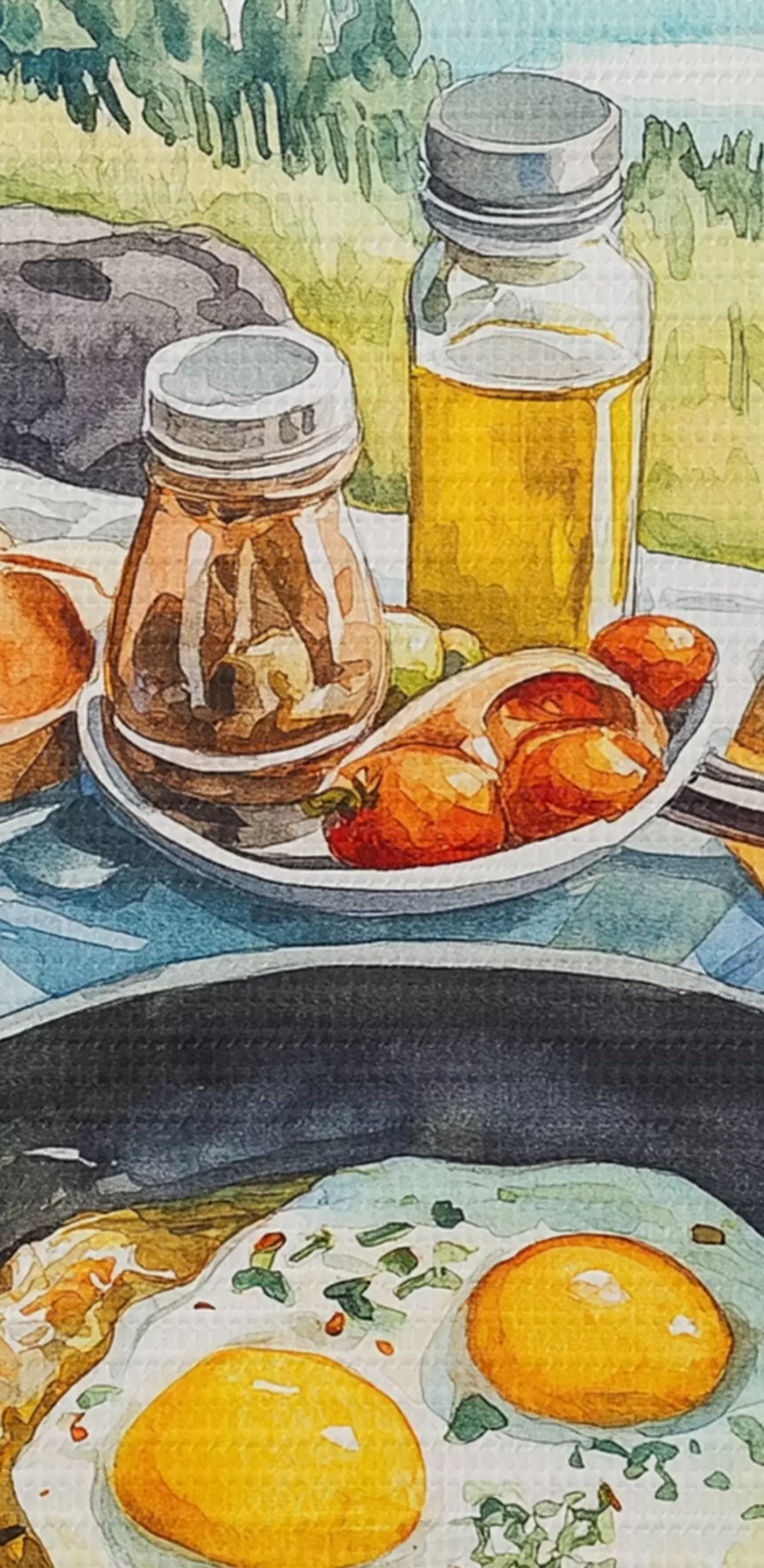 Tablouri Mic dejun estetic lângă lac, stil acuarelă s42432