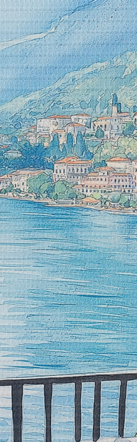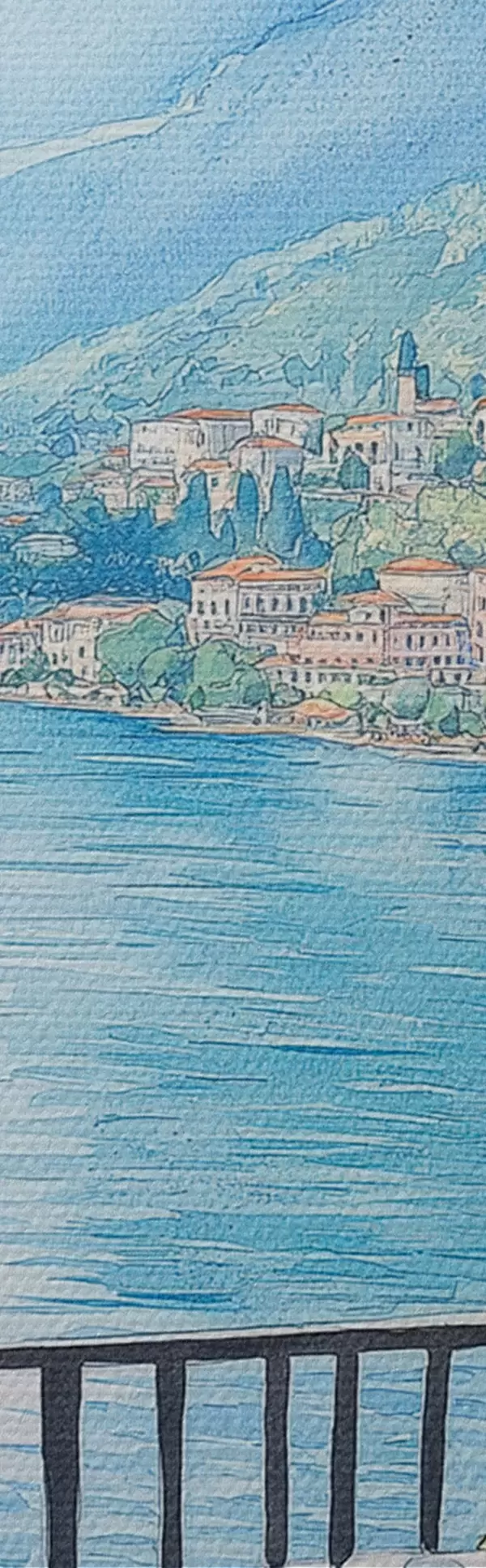 Pictură pe pânză Brunch în Italia, stil acuarelă, pizza margarita, lac, natură de vară Nr s42436