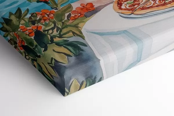 Pictură pe pânză Lacul Como, Italia, stil acuarelă, pizza, cocktailuri, oraș vechi, munți Nr s42437
