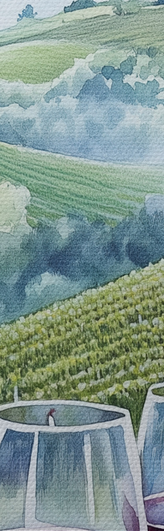 Tablouri Toscana peisaj, grape yards, ochelari de vin, stil acuarelă s42445