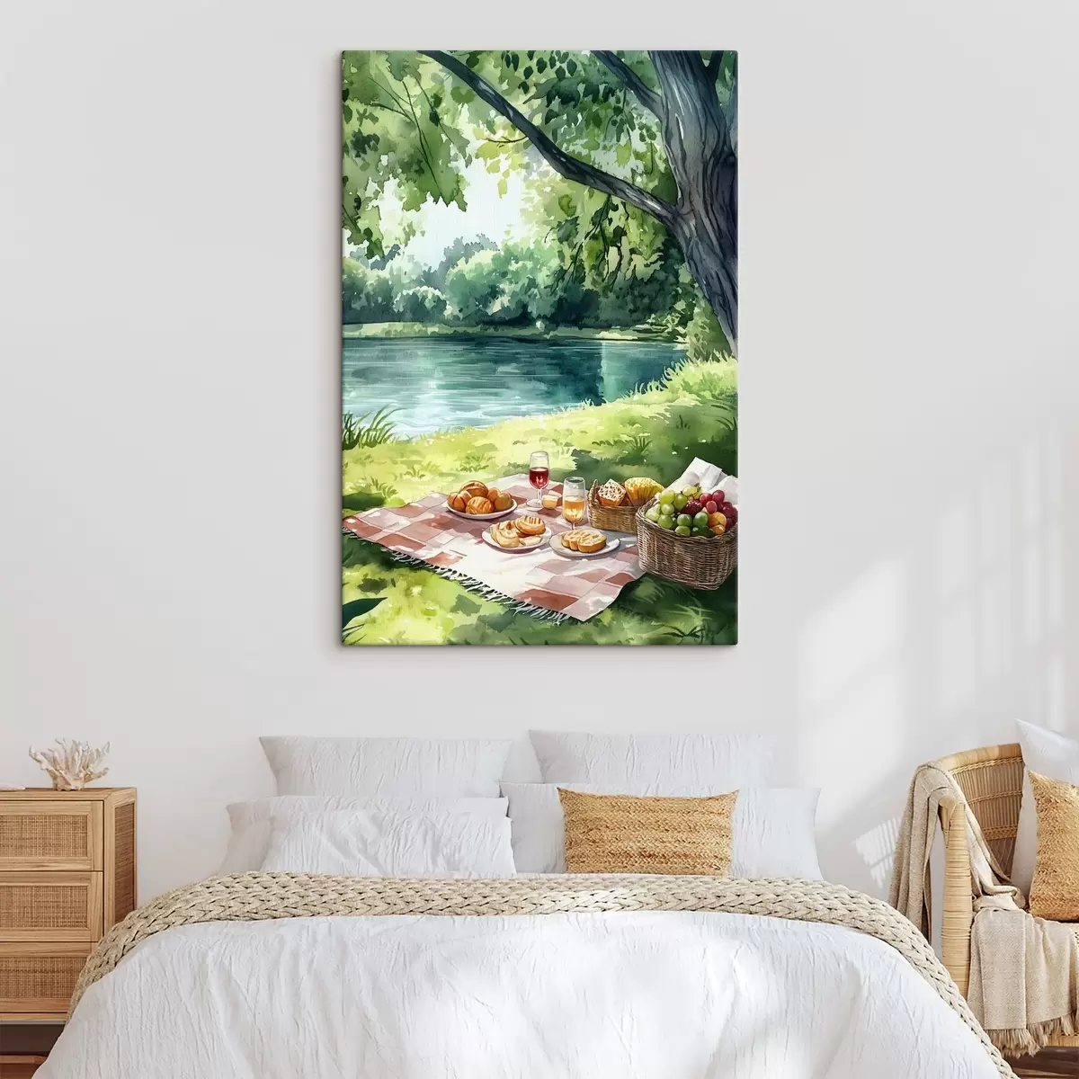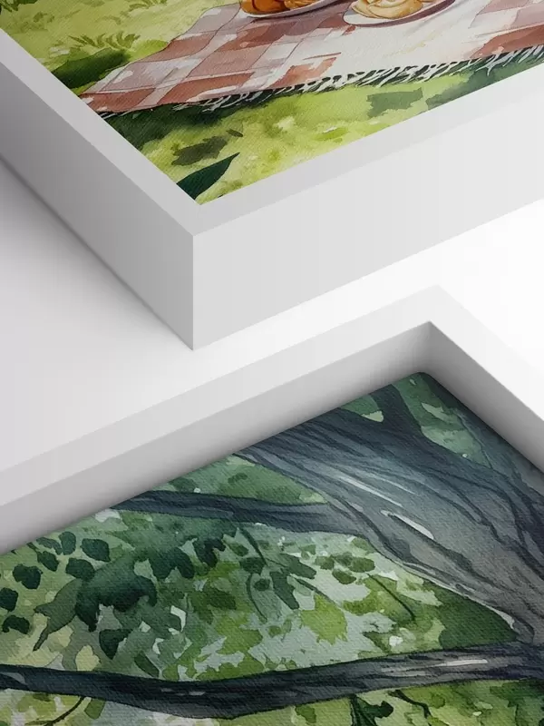 Pictură pe pânză Frumos picnic romantic lângă lacul de vară, fructe, verdeață Nr s42451