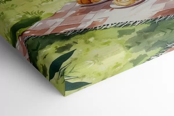 Pictură pe pânză Frumos picnic romantic lângă lacul de vară, fructe, verdeață Nr s42451