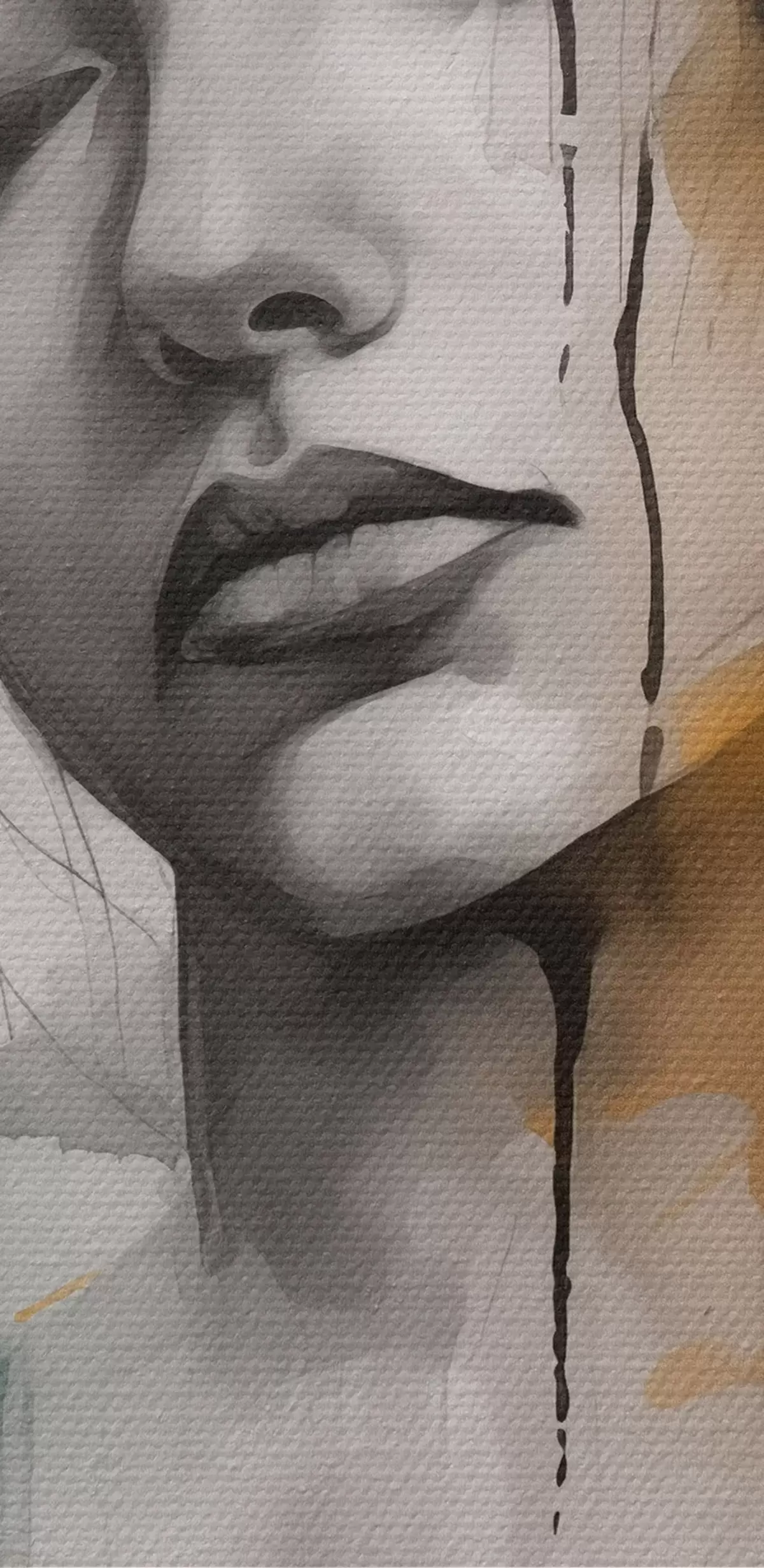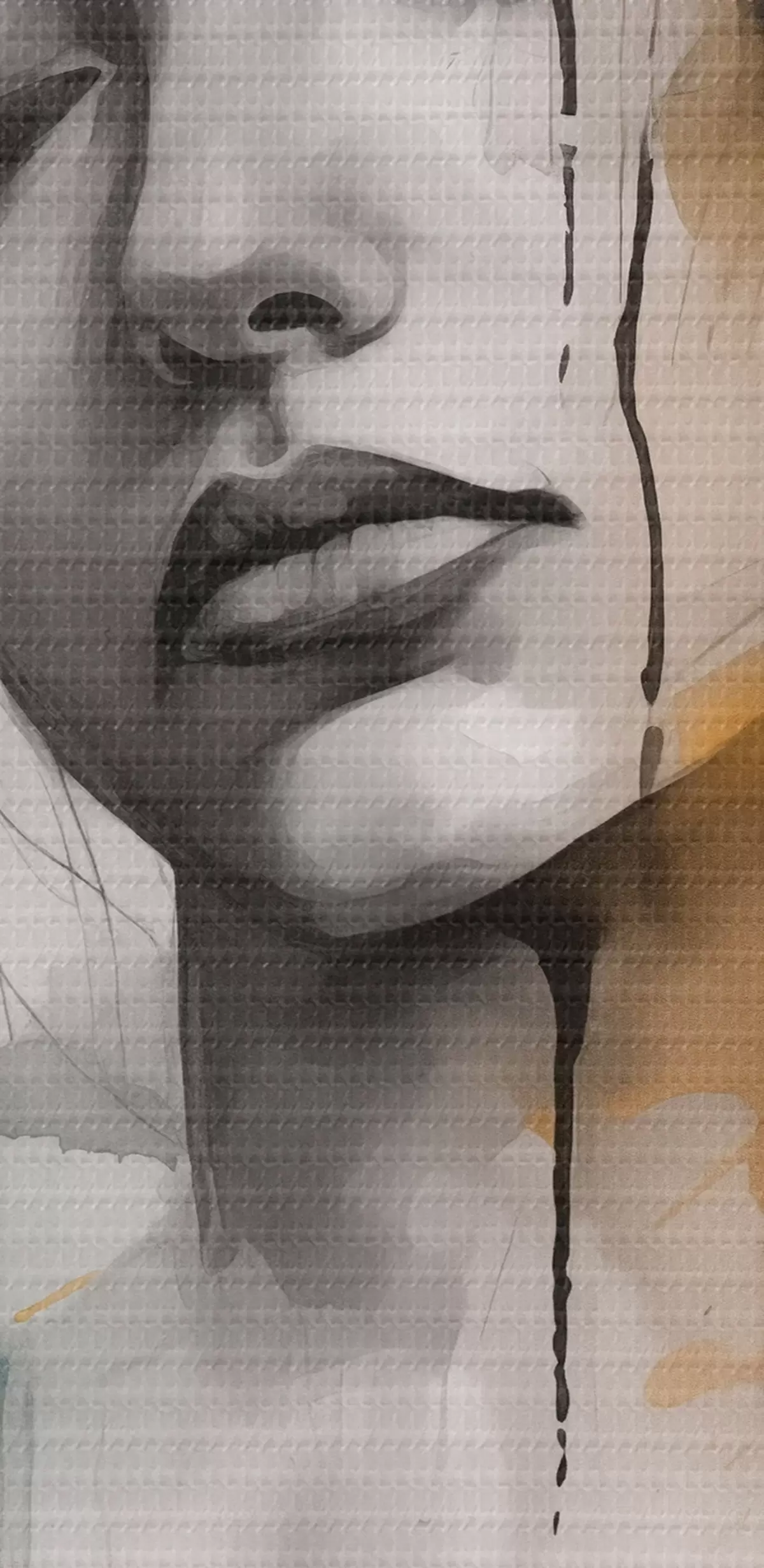 Pictură pe pânză Portret de fată în tehnica acuarelei cu umbre abstracte Nr s42474
