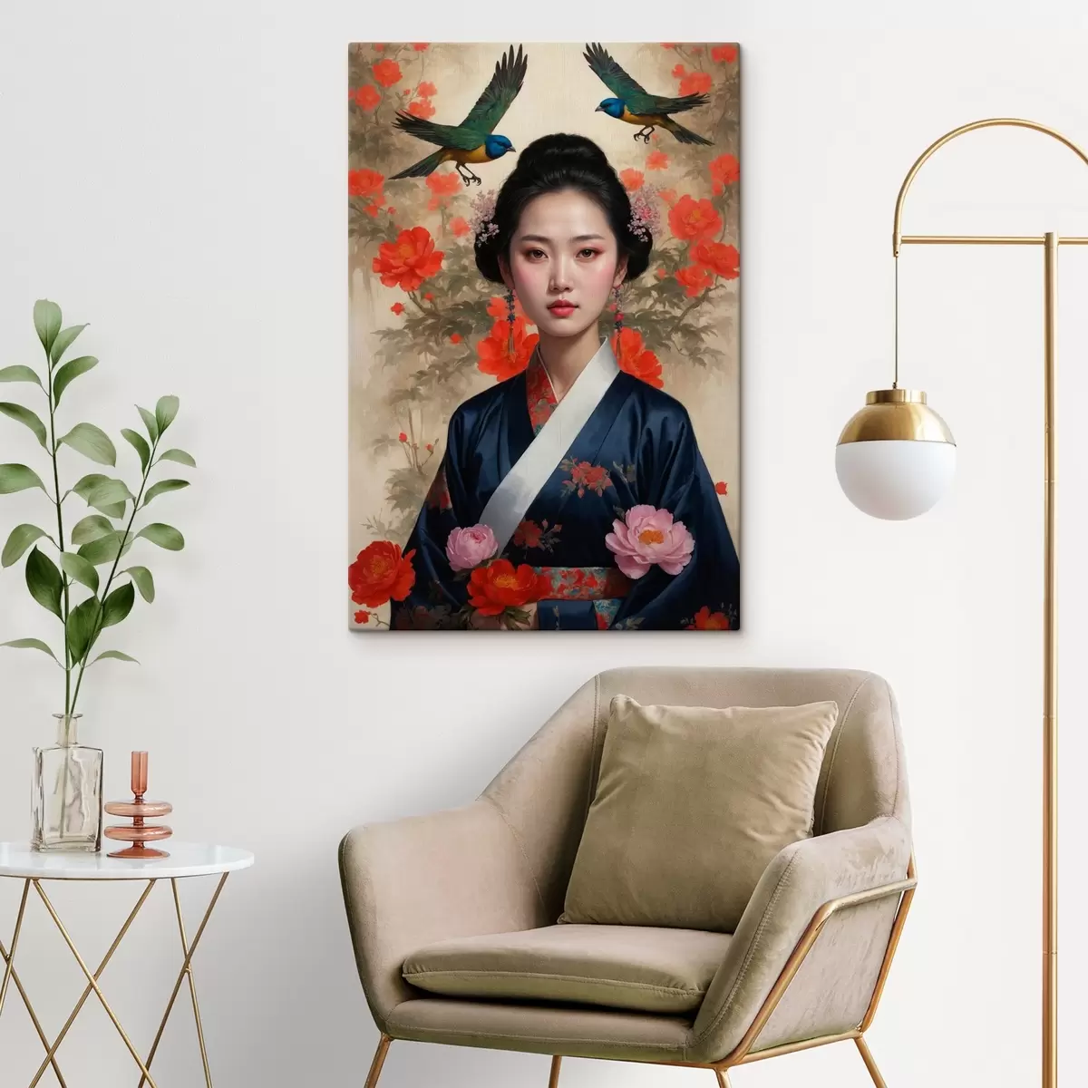 Pictură pe pânză Fată japoneză în kimono Nr s42511
