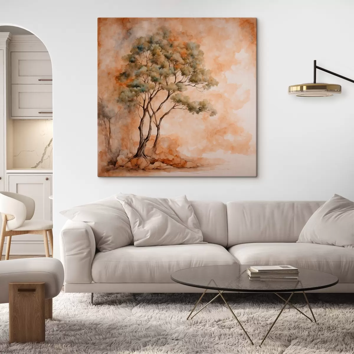 Pictură pe pânză Copac pe fundal portocaliu și alb în stil acuarelă pictură Nr s42514