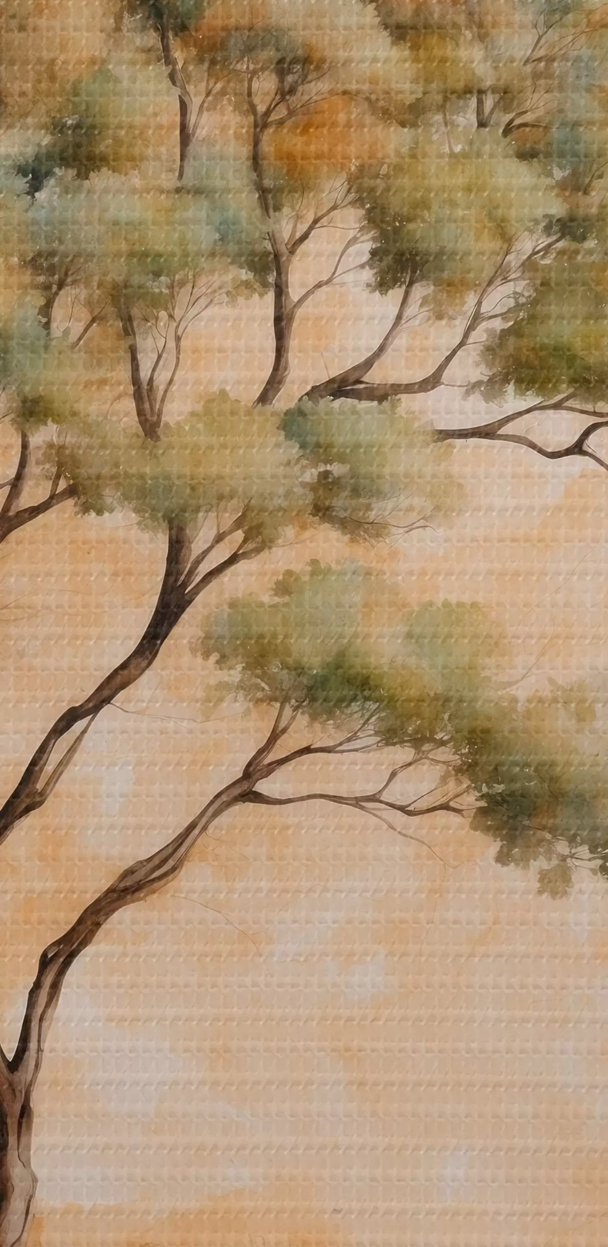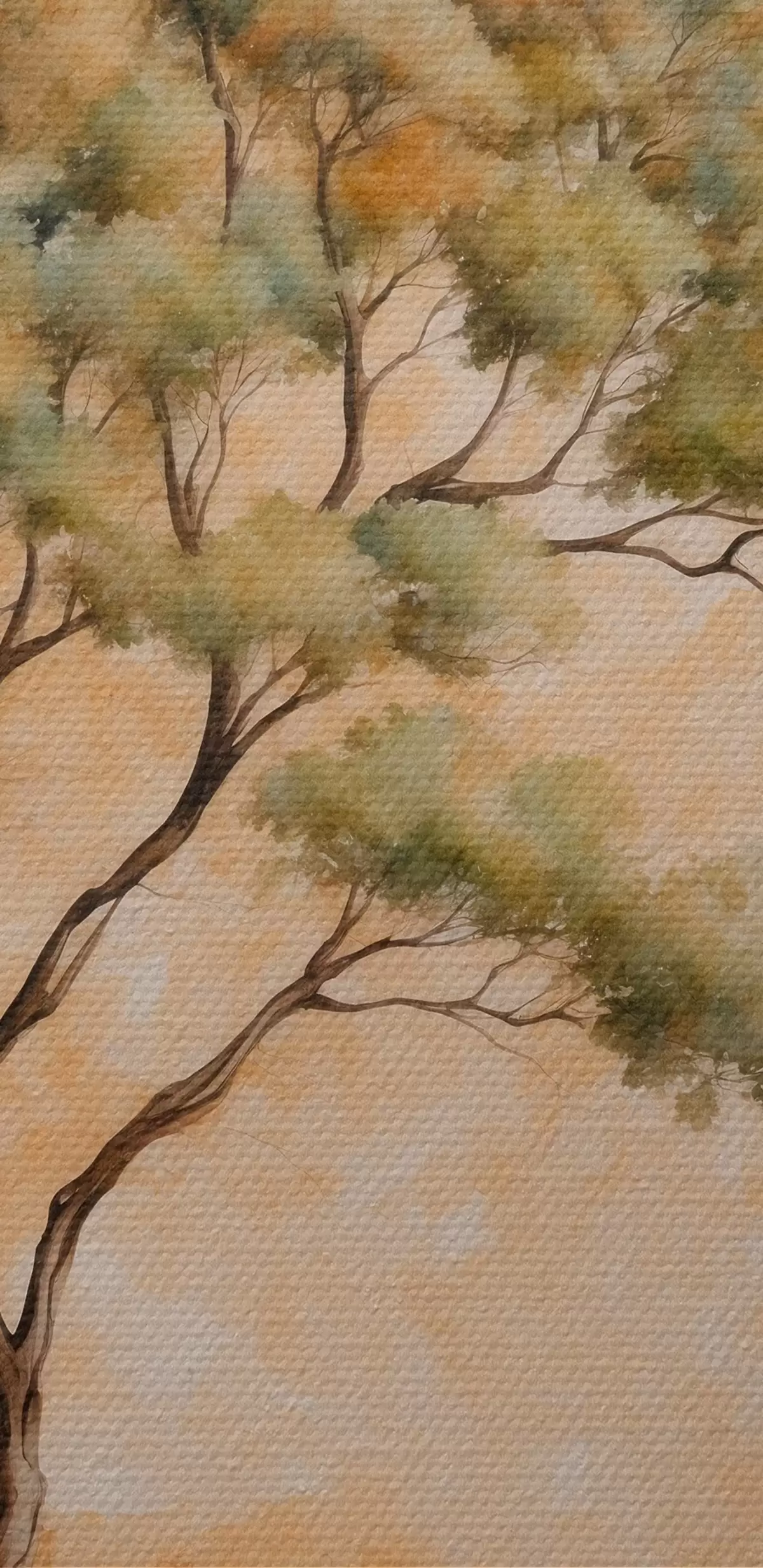 Tablouri Copac pe fundal portocaliu și alb în stil acuarelă pictură s42514