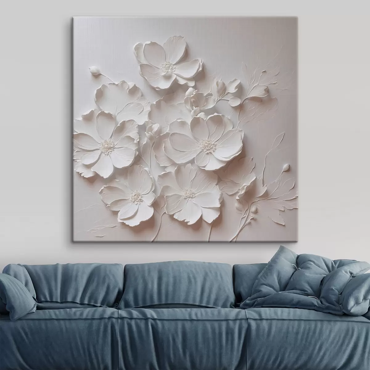 Pictură pe pânză Flori albe pe fundal alb în stil pictură în ulei Nr s42516