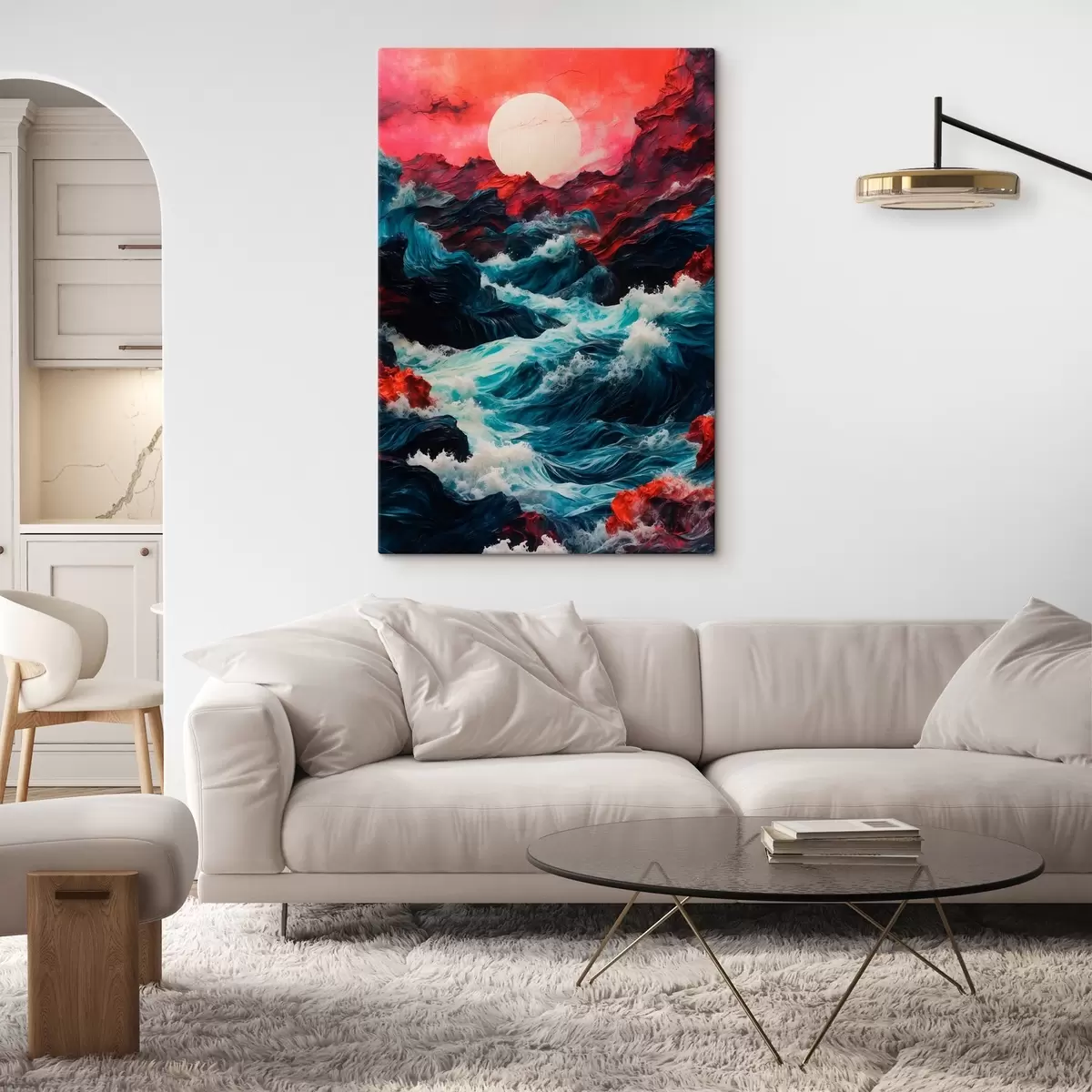 Pictură pe pânză Mare furtunoasă și soare alb Nr s42519