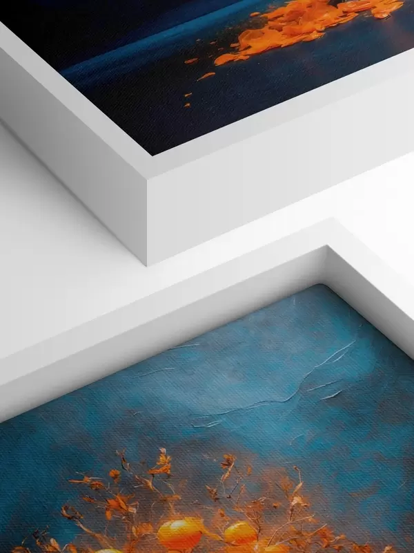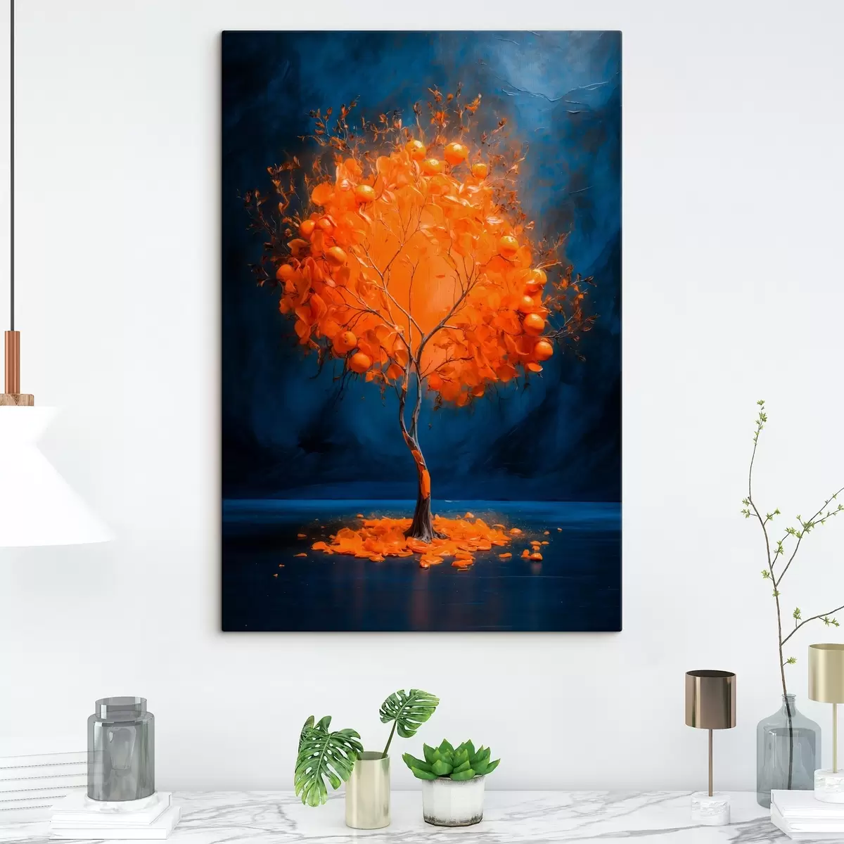 Tablouri Copac portocaliu pe fundal albastru în stil pictură acrilică s42525