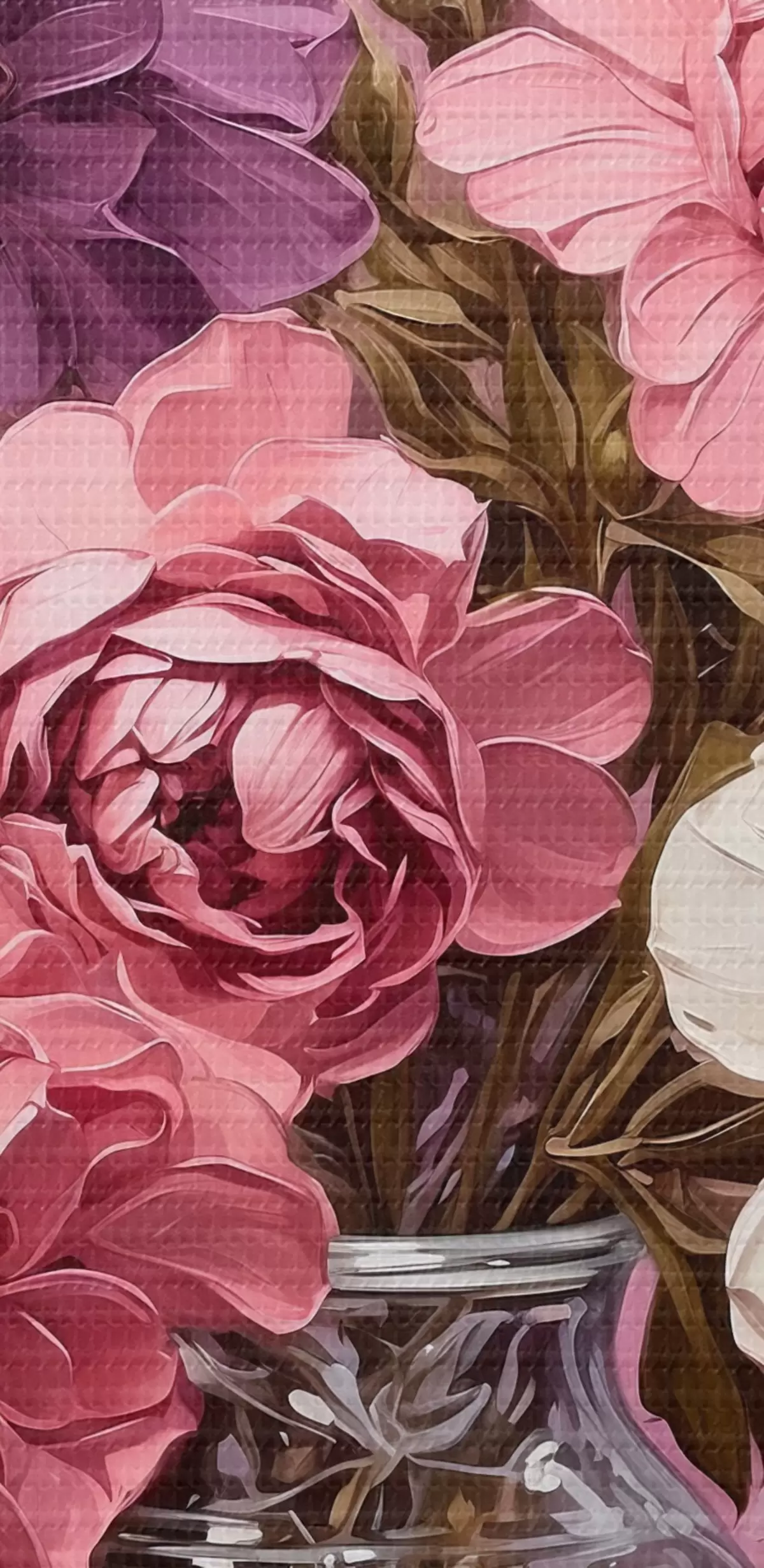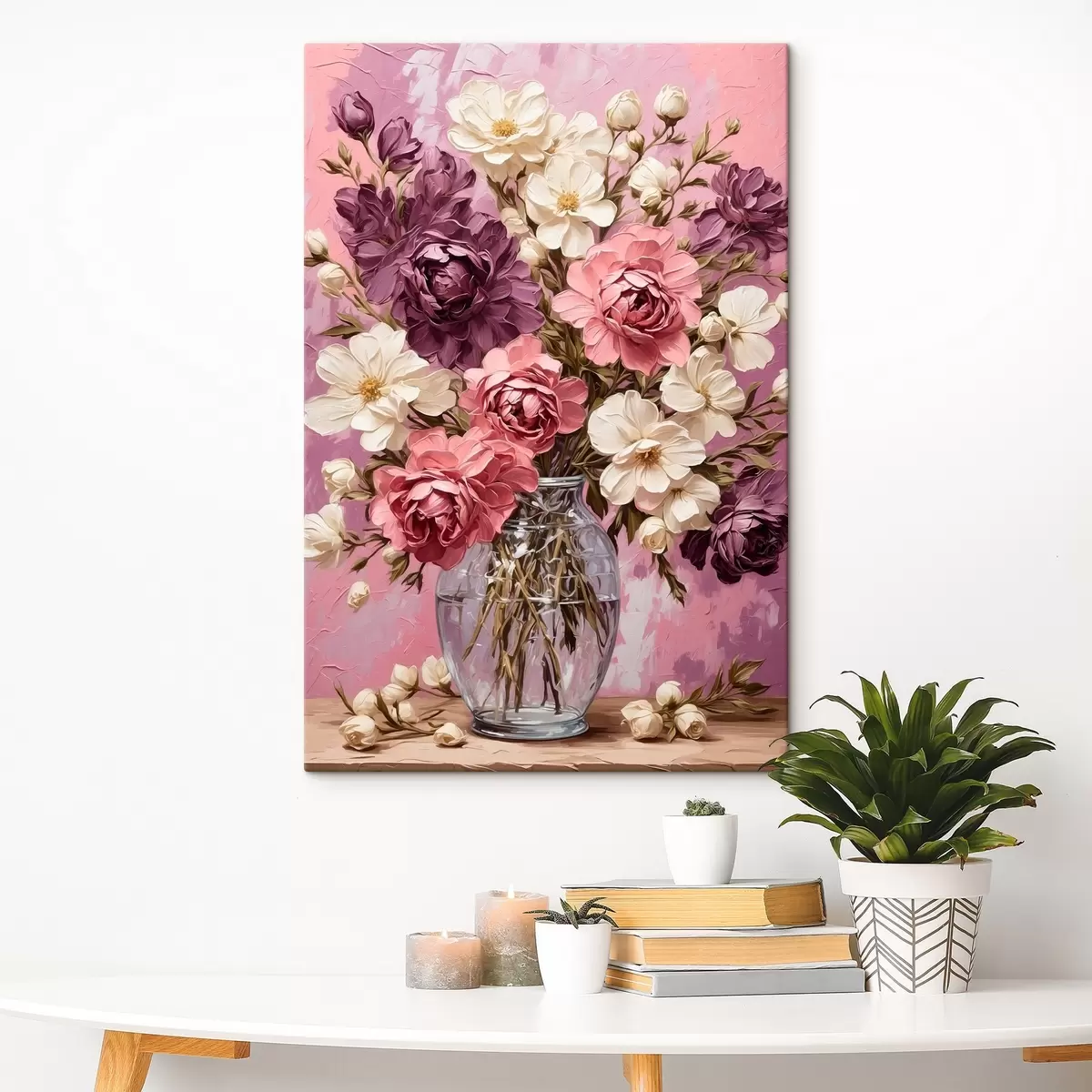 Pictură pe pânză Flori în vază transparentă pe fundal violet Nr s42535