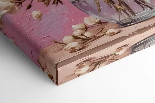 Pictură pe pânză Flori în vază transparentă pe fundal violet Nr s42535