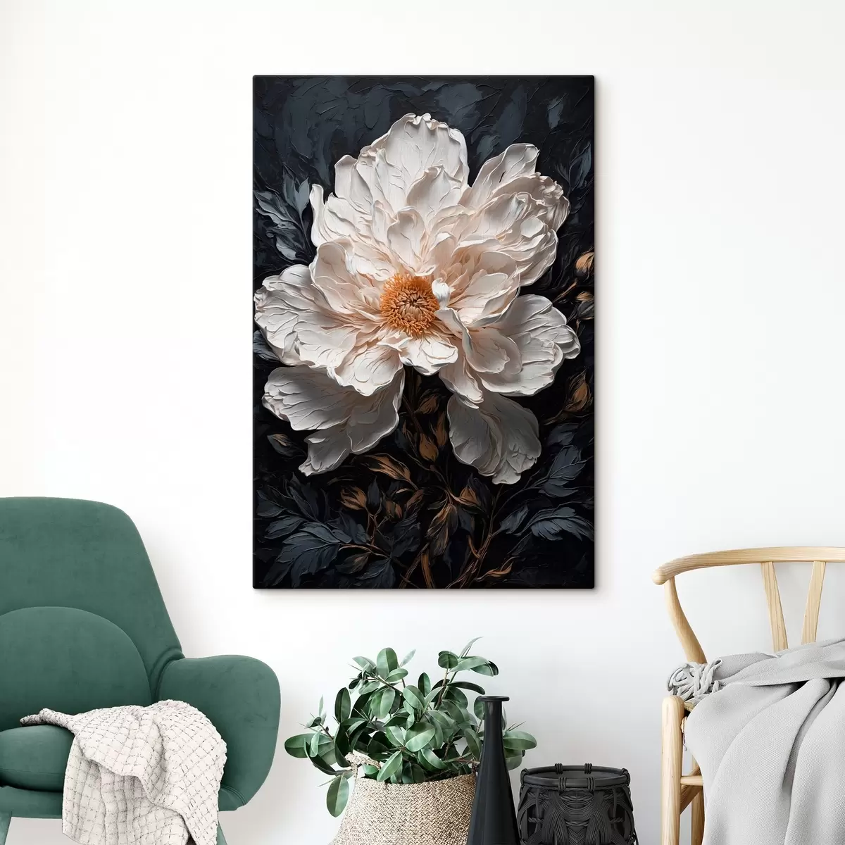 Tablouri Floare albă pe fundal negru în stil pictură în ulei s42544