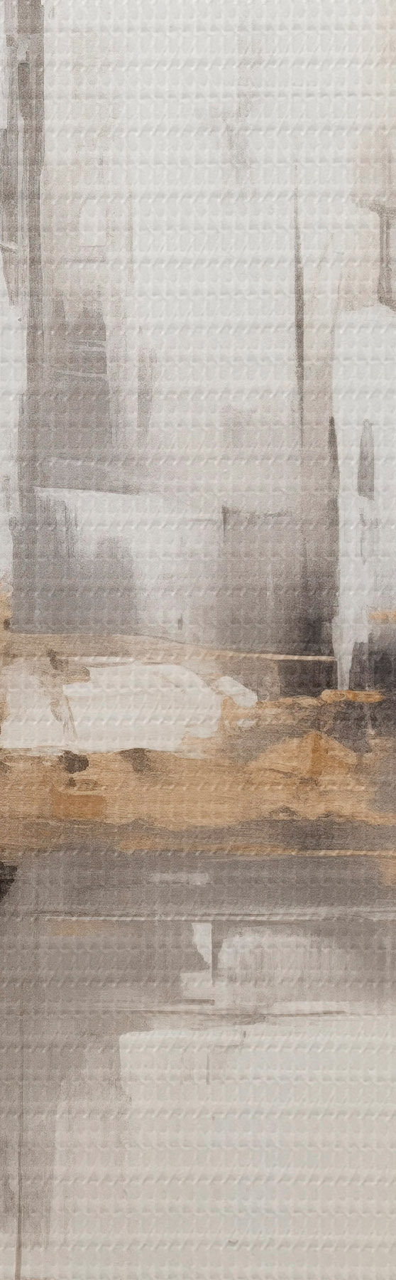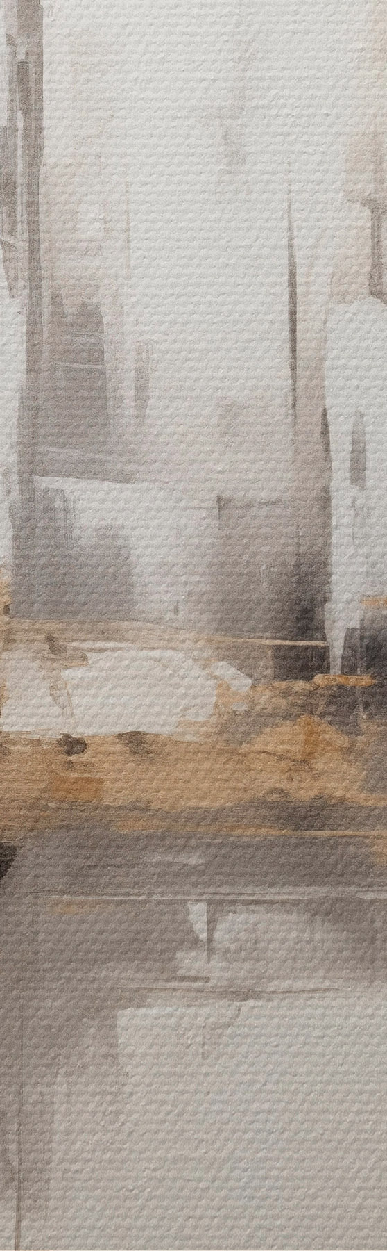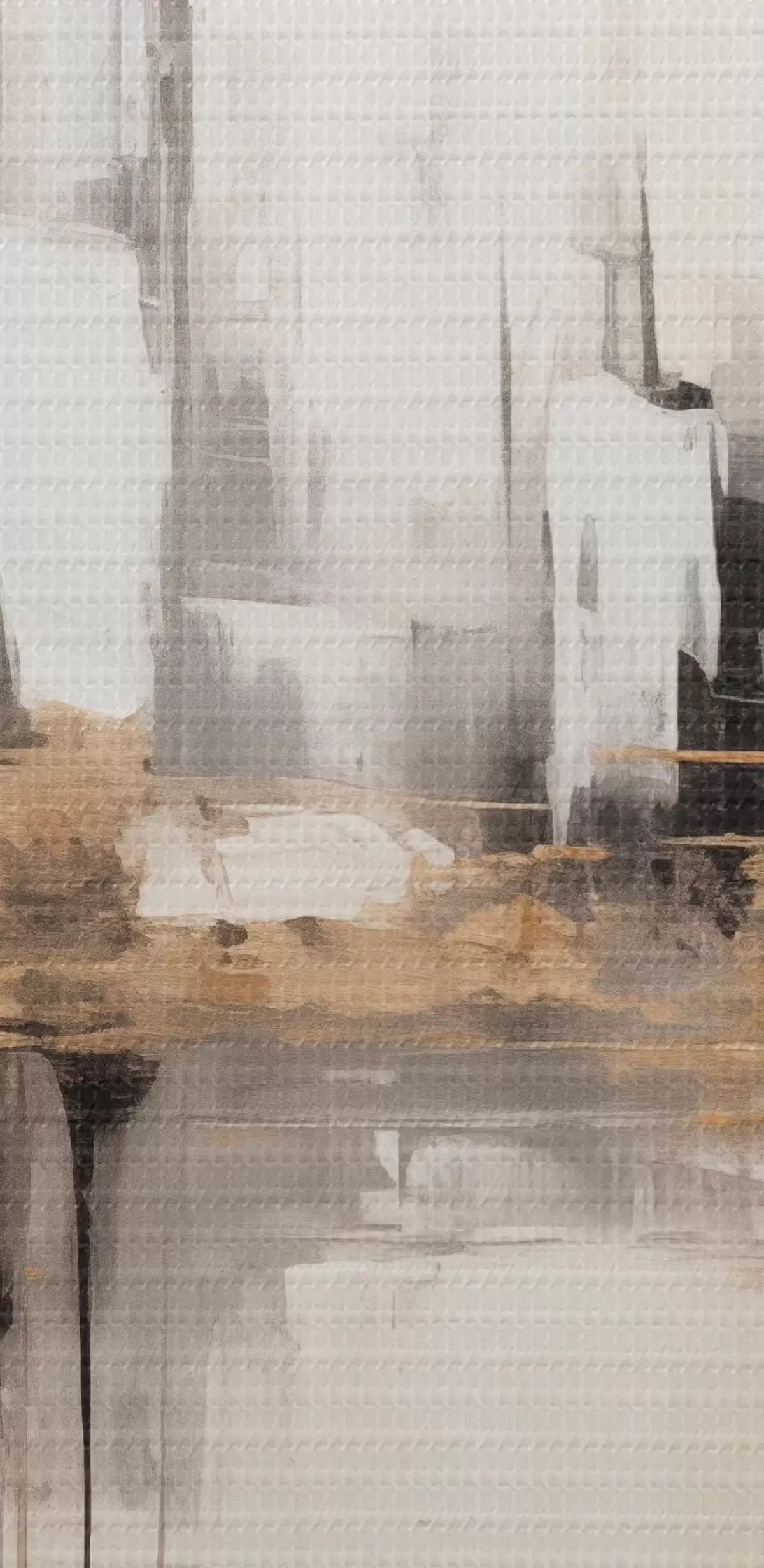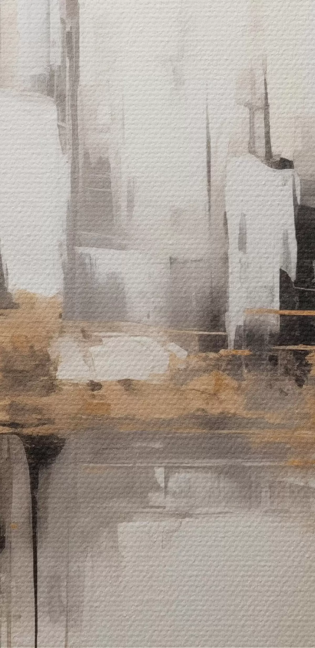 Pictură pe pânză Un peisaj urban abstract cu reflexii ale clădirilor în apă, creat în tonuri neutre cu accente de nuanțe calde. Nr s42628