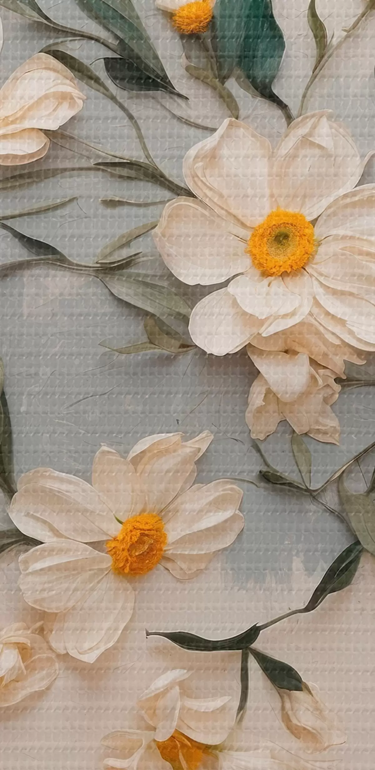 Pictură pe pânză Flori albe și frunze pe fundal alb și gri Nr s42764