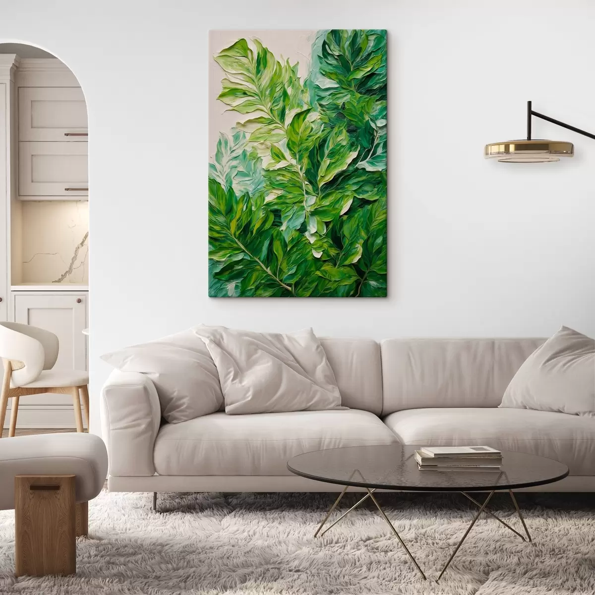 Pictură pe pânză Frunze tropicale în stilul picturii în ulei Nr s42767