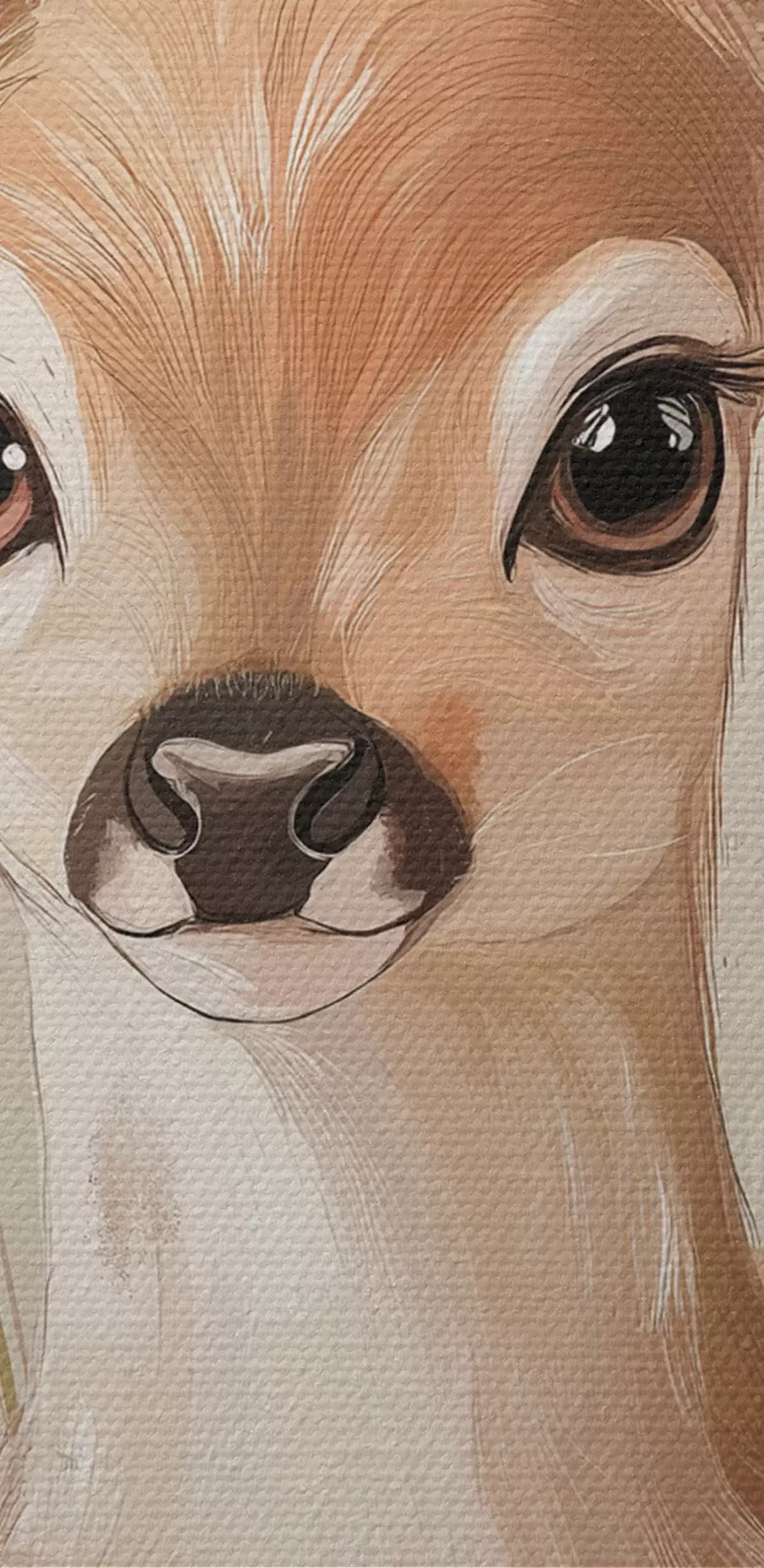 Pictură pe pânză Cerb mic în pajiștea de vară, desen în stil acrilic, culori roz pastel și bej Nr s42781