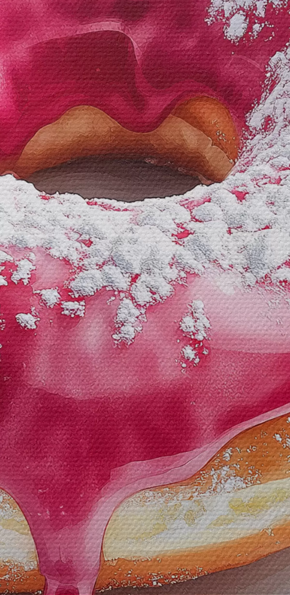 Pictură pe pânză Donat realist cu fructe de pădure și glazură roz Nr s42790