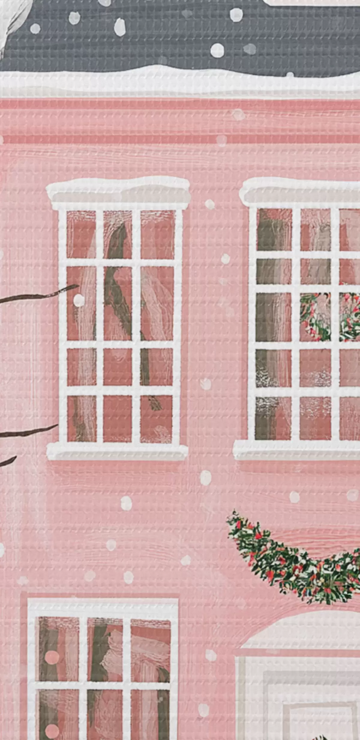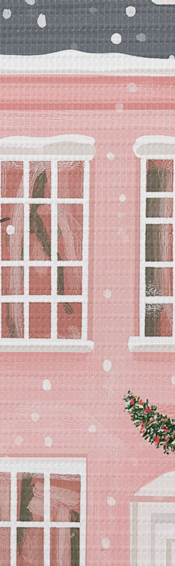 Pictură pe pânză Case roz drăguț, copaci de pin, peisaje de iarnă Nr s42791