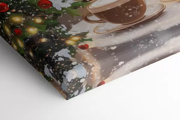 Pictură pe pânză Cafenea de iarnă confortabilă, cești de cafea, stil acrilic, arhitectura orașului vechi Nr s42795