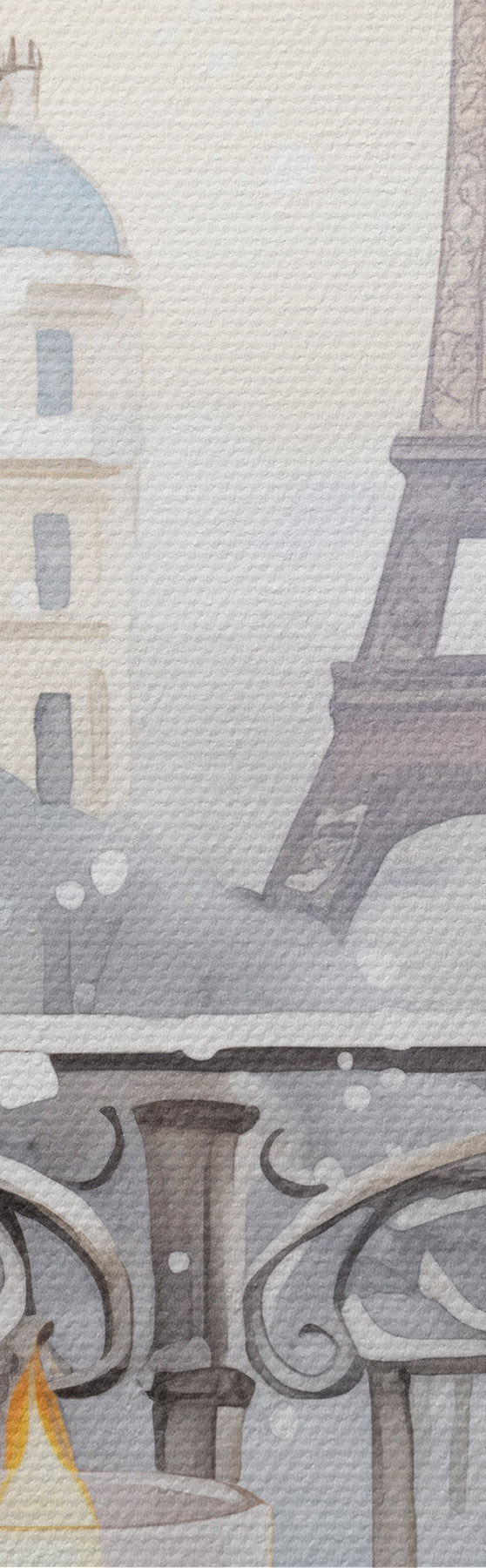 Tablouri Cafea frumoasă în Paris, cești de ceai, vedere romantică, iarnă, stil acuarelă s42799
