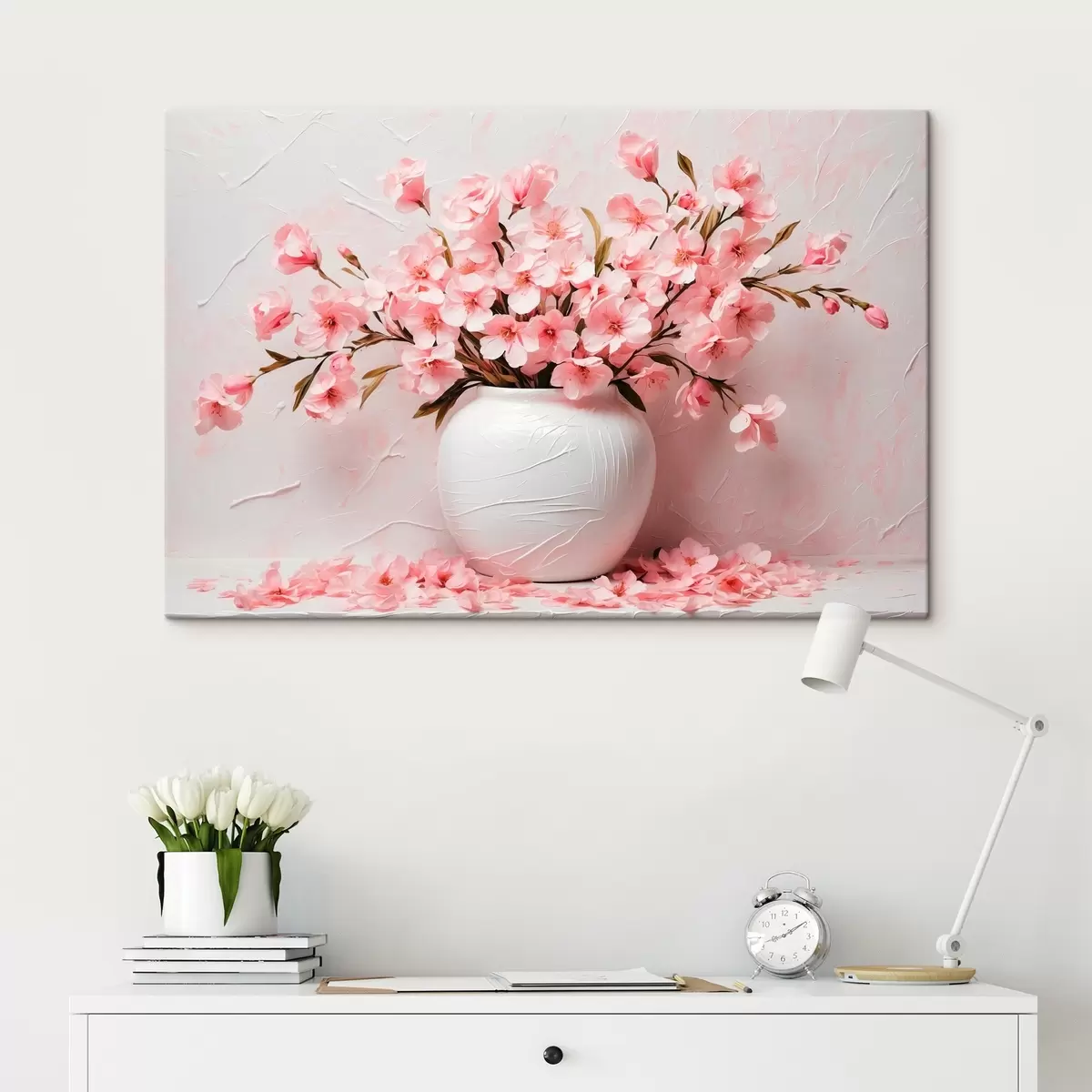 Pictură pe pânză Flori roz în vază albă Nr s42915