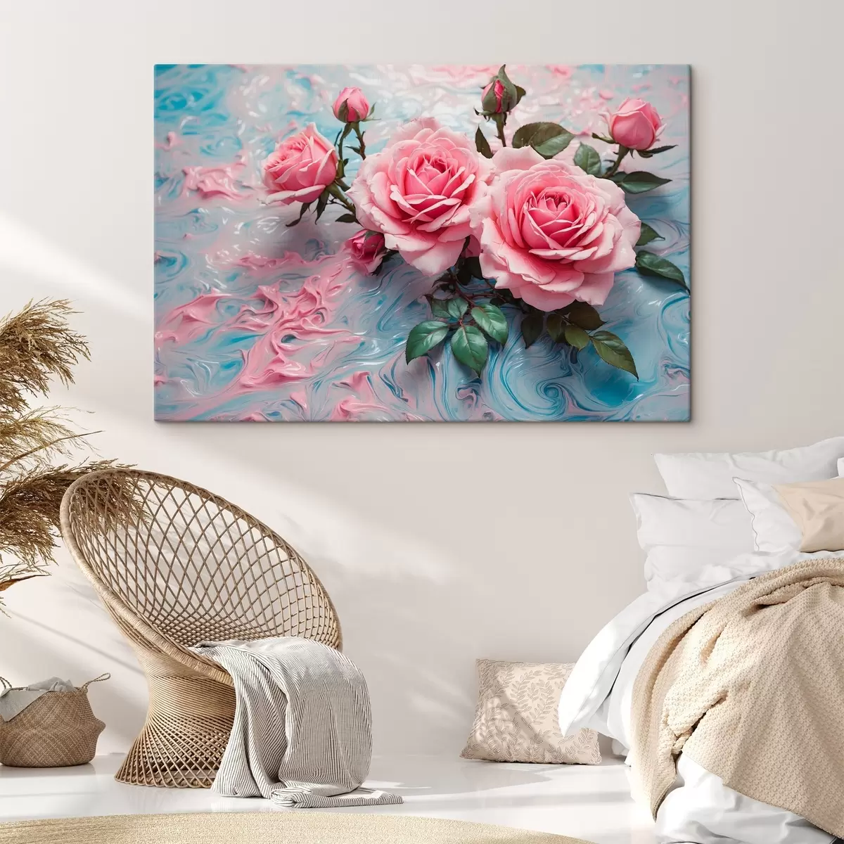 Pictură pe pânză Trandafiri pe fundal abstract blurat Nr s42919