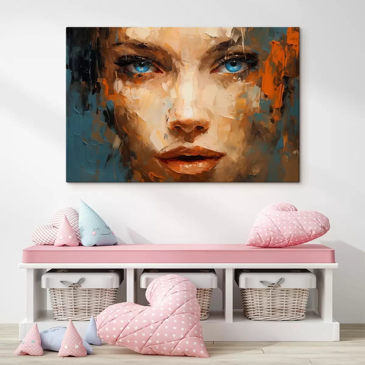 Pictură pe pânză Portret abstract al unei femei în tușe îndrăznețe cu ochi albaștri izbitoare Nr s42939