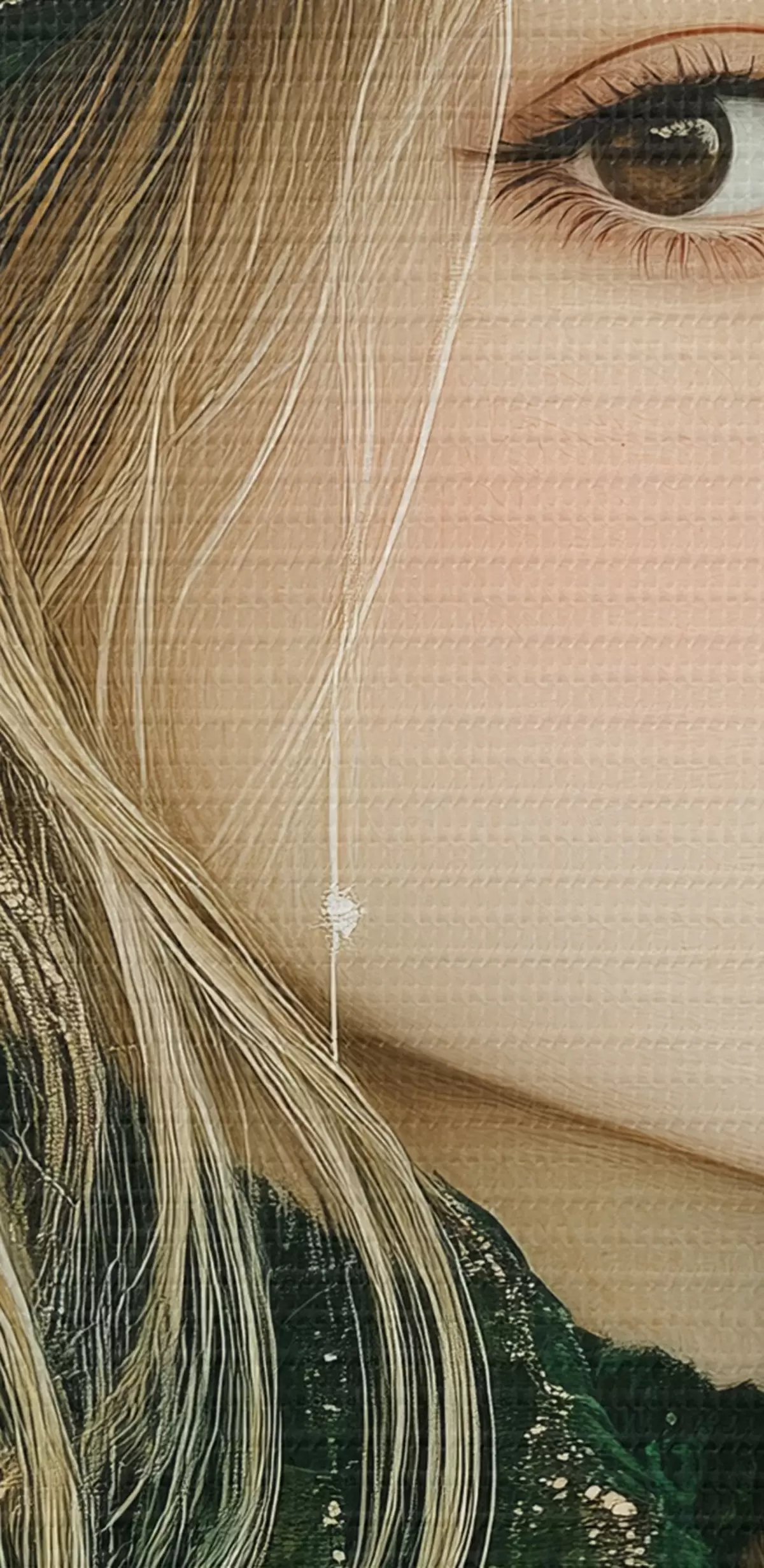 Țesătura fină a firelor de pe această pânză seamănă cu suprafața pânzelor artiștilor profesioniști.