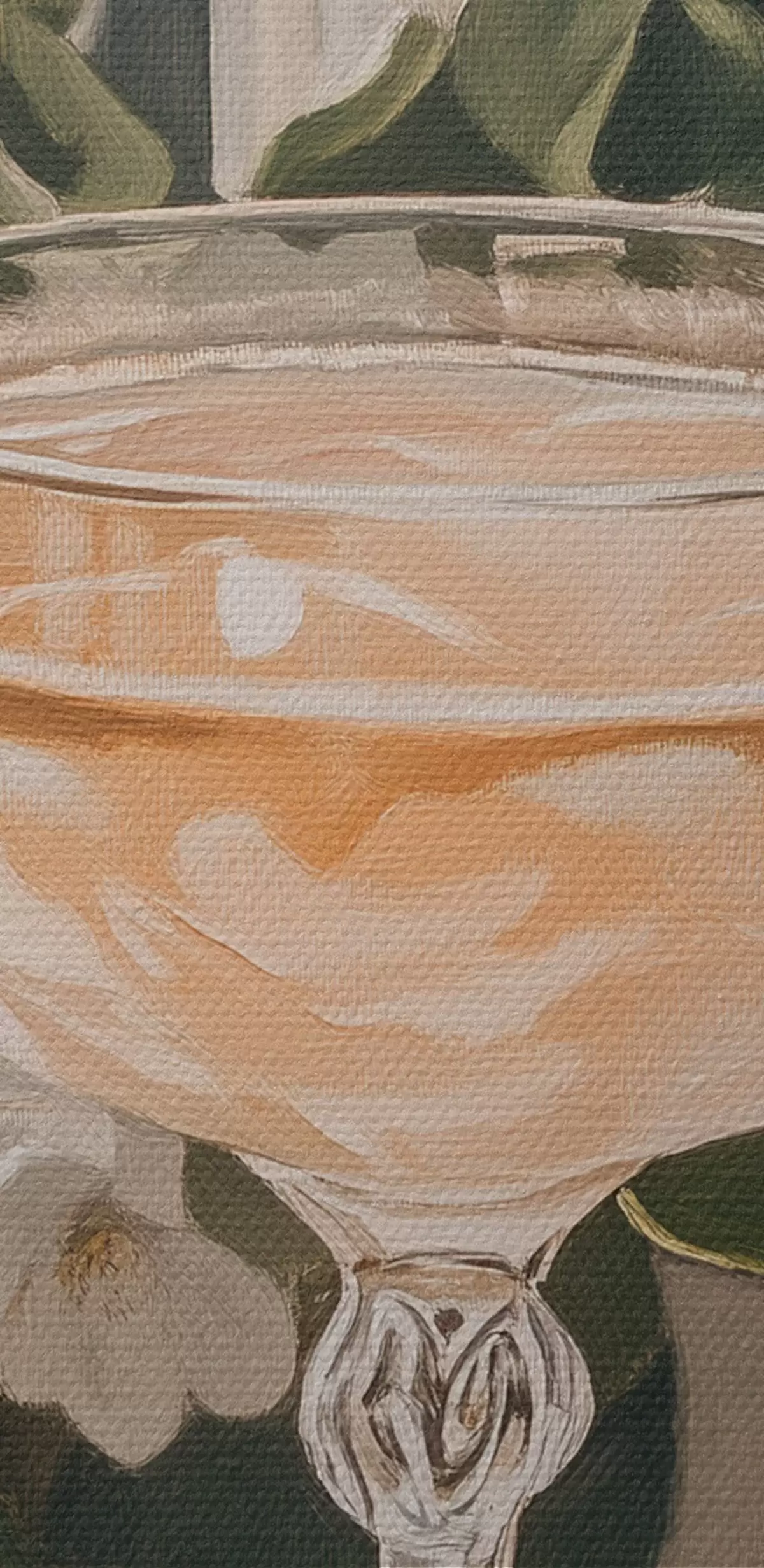 Tablouri Pahar de șampanie, vintage, stil acuarelă, flori albe s43051