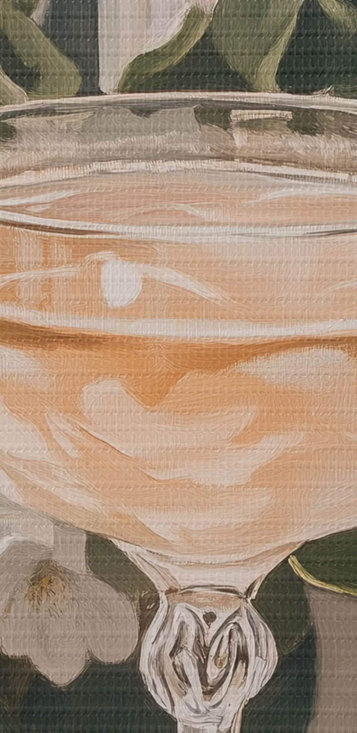 Pictură pe pânză Pahar de șampanie, vintage, stil acuarelă, flori albe Nr s43051